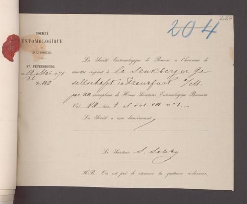 V176 Senckenberg Gesellschaft für Naturforschung, 17 - Korrespondenz über den Schriftentausch mit naturwissenschaftlichen Vereinigungen mit Ortsindex, Bd. 1