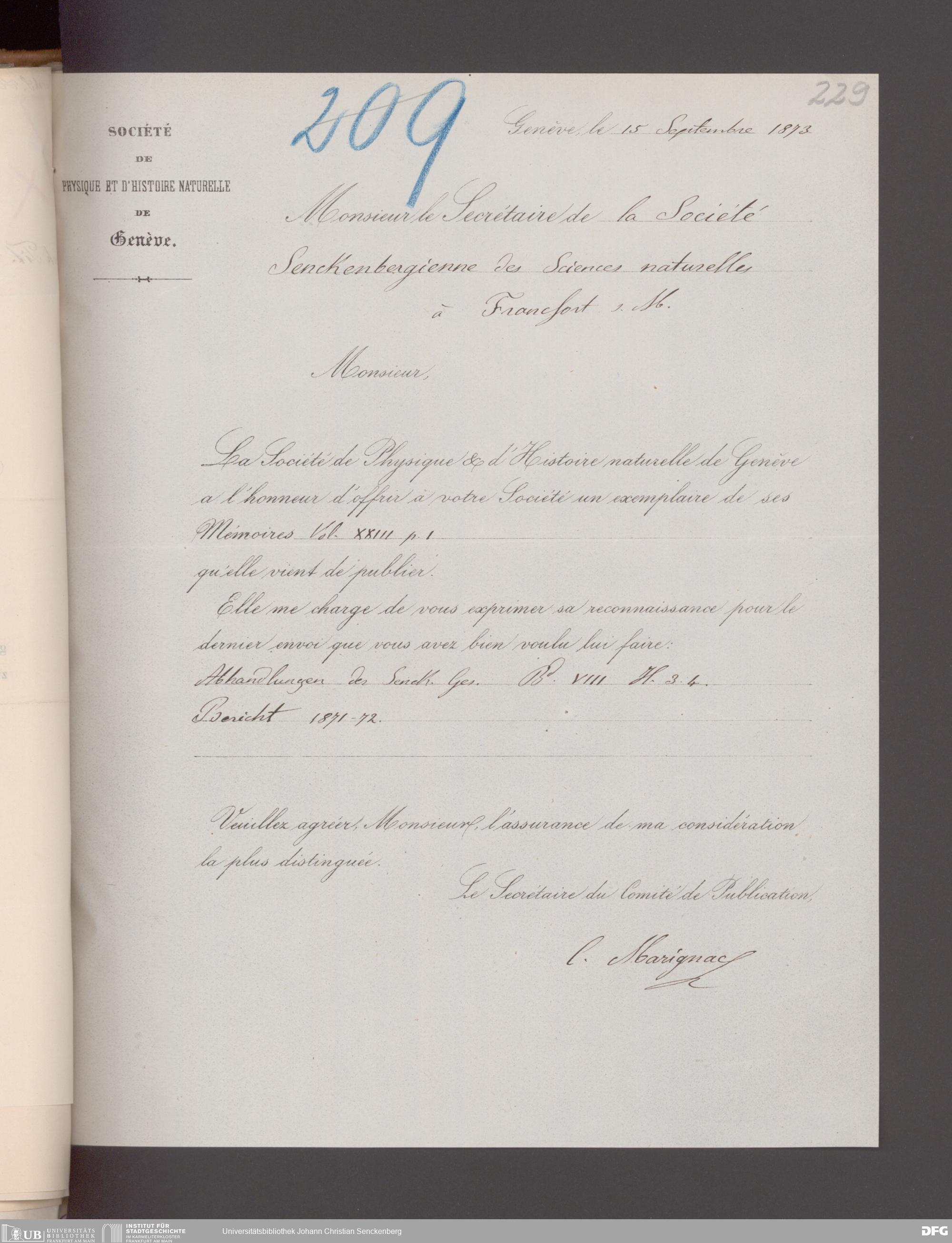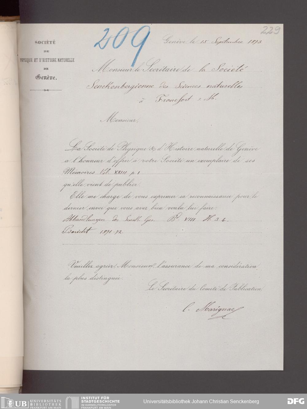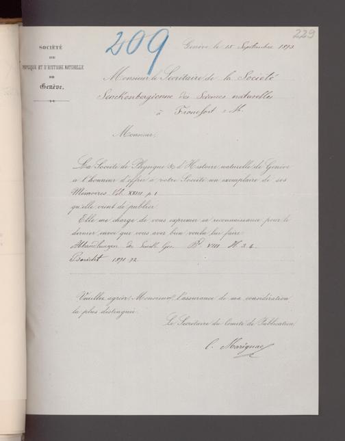 V176 Senckenberg Gesellschaft für Naturforschung, 17 - Korrespondenz über den Schriftentausch mit naturwissenschaftlichen Vereinigungen mit Ortsindex, Bd. 1
