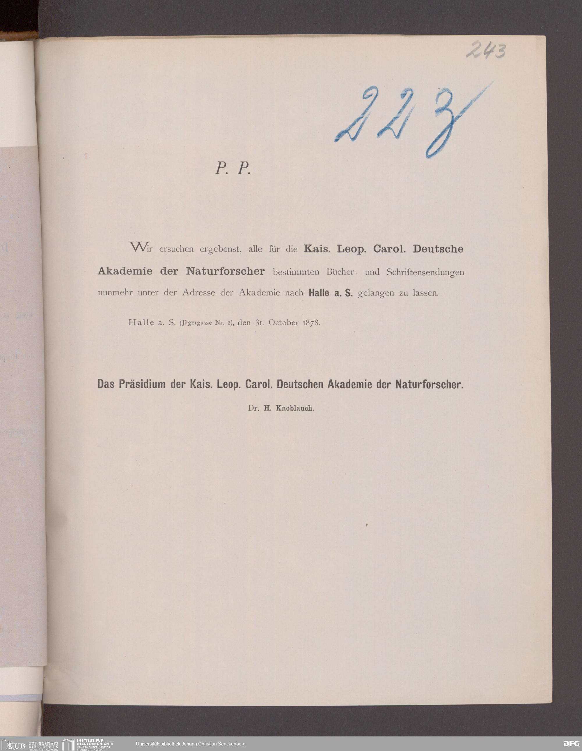 V176 Senckenberg Gesellschaft für Naturforschung, 17 - Korrespondenz über den Schriftentausch mit naturwissenschaftlichen Vereinigungen mit Ortsindex, Bd. 1