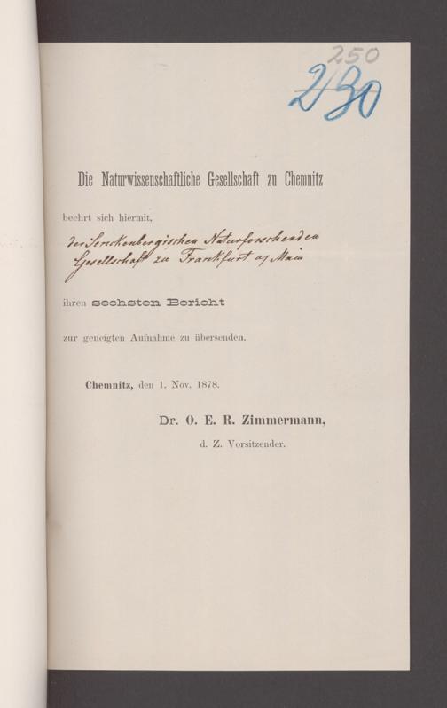 V176 Senckenberg Gesellschaft für Naturforschung, 17 - Korrespondenz über den Schriftentausch mit naturwissenschaftlichen Vereinigungen mit Ortsindex, Bd. 1