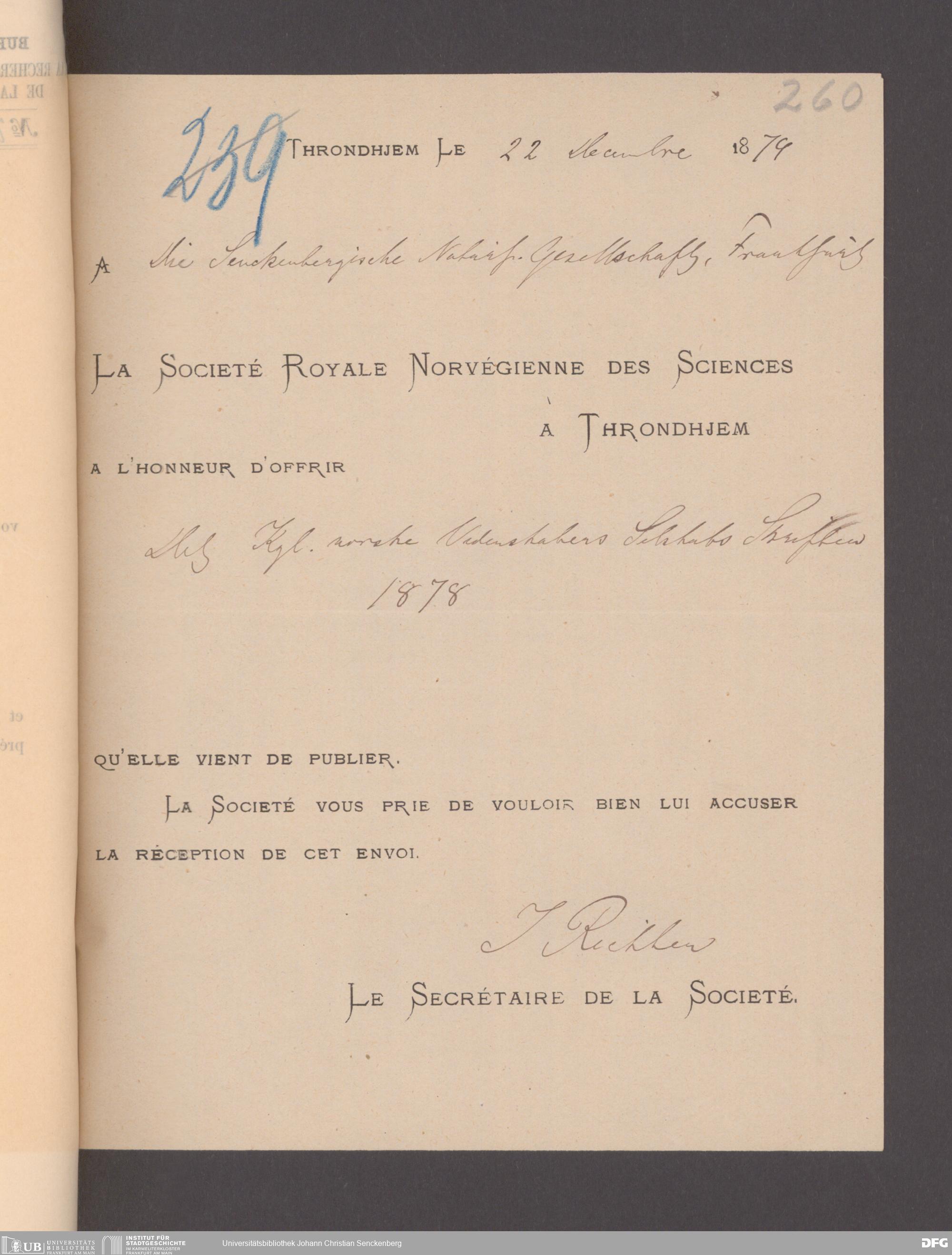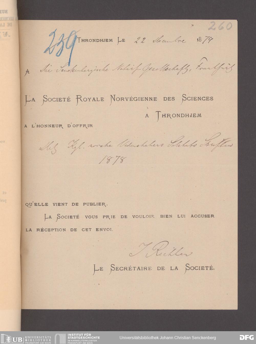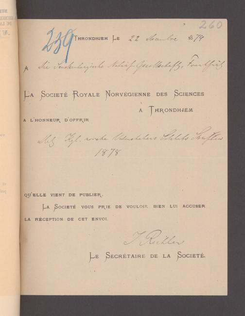 V176 Senckenberg Gesellschaft für Naturforschung, 17 - Korrespondenz über den Schriftentausch mit naturwissenschaftlichen Vereinigungen mit Ortsindex, Bd. 1