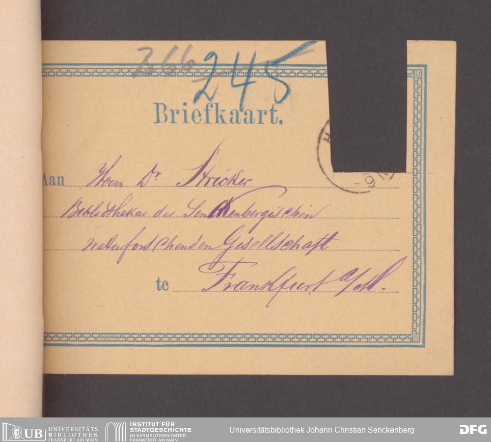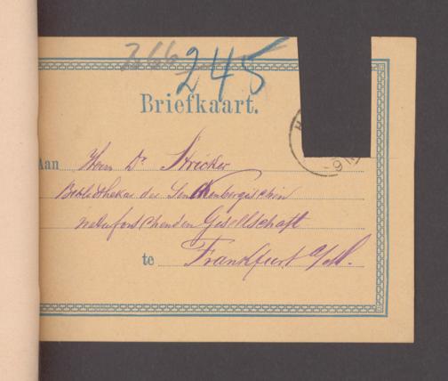 V176 Senckenberg Gesellschaft für Naturforschung, 17 - Korrespondenz über den Schriftentausch mit naturwissenschaftlichen Vereinigungen mit Ortsindex, Bd. 1