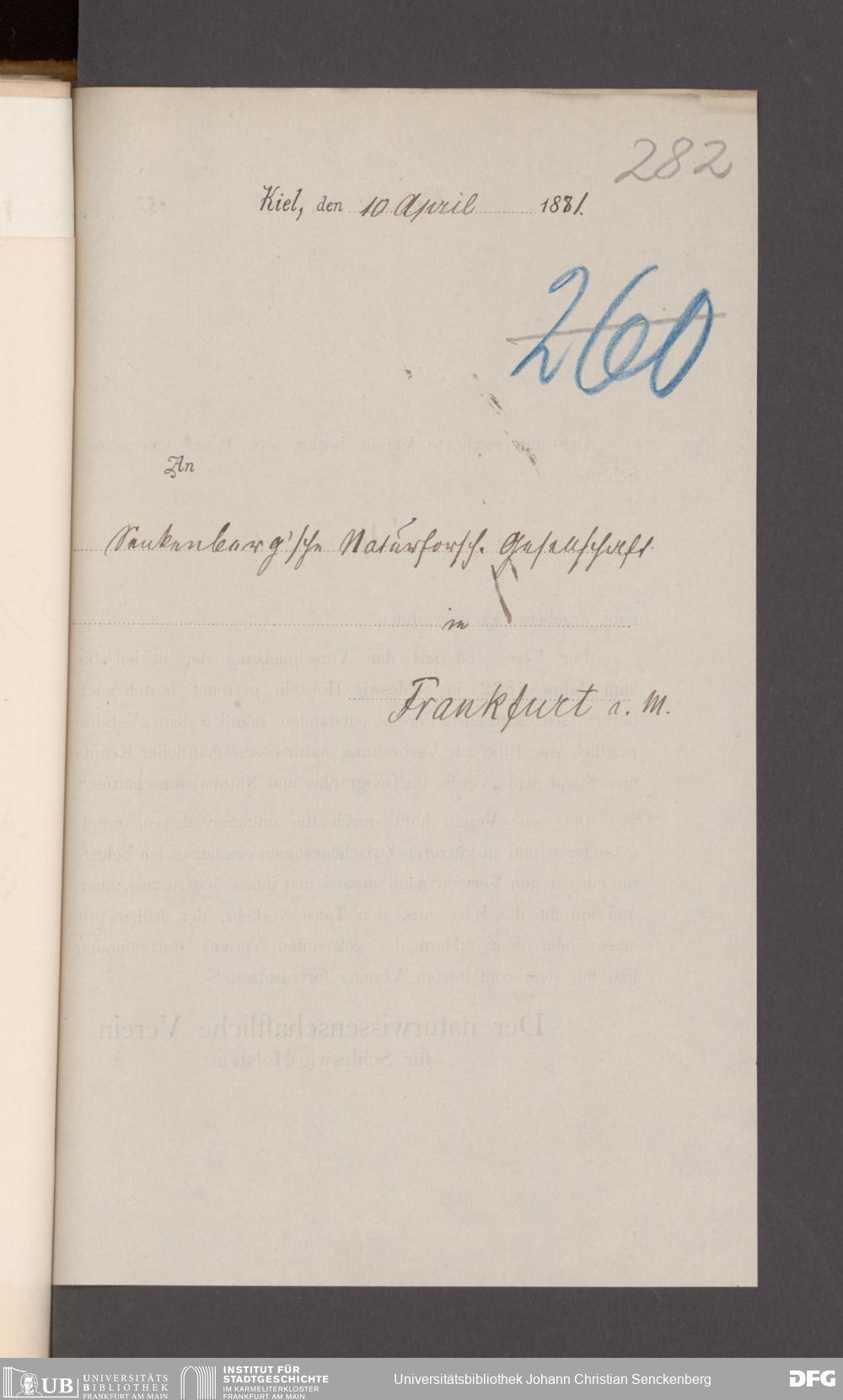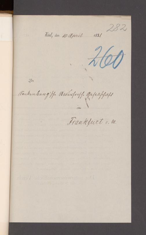 V176 Senckenberg Gesellschaft für Naturforschung, 17 - Korrespondenz über den Schriftentausch mit naturwissenschaftlichen Vereinigungen mit Ortsindex, Bd. 1