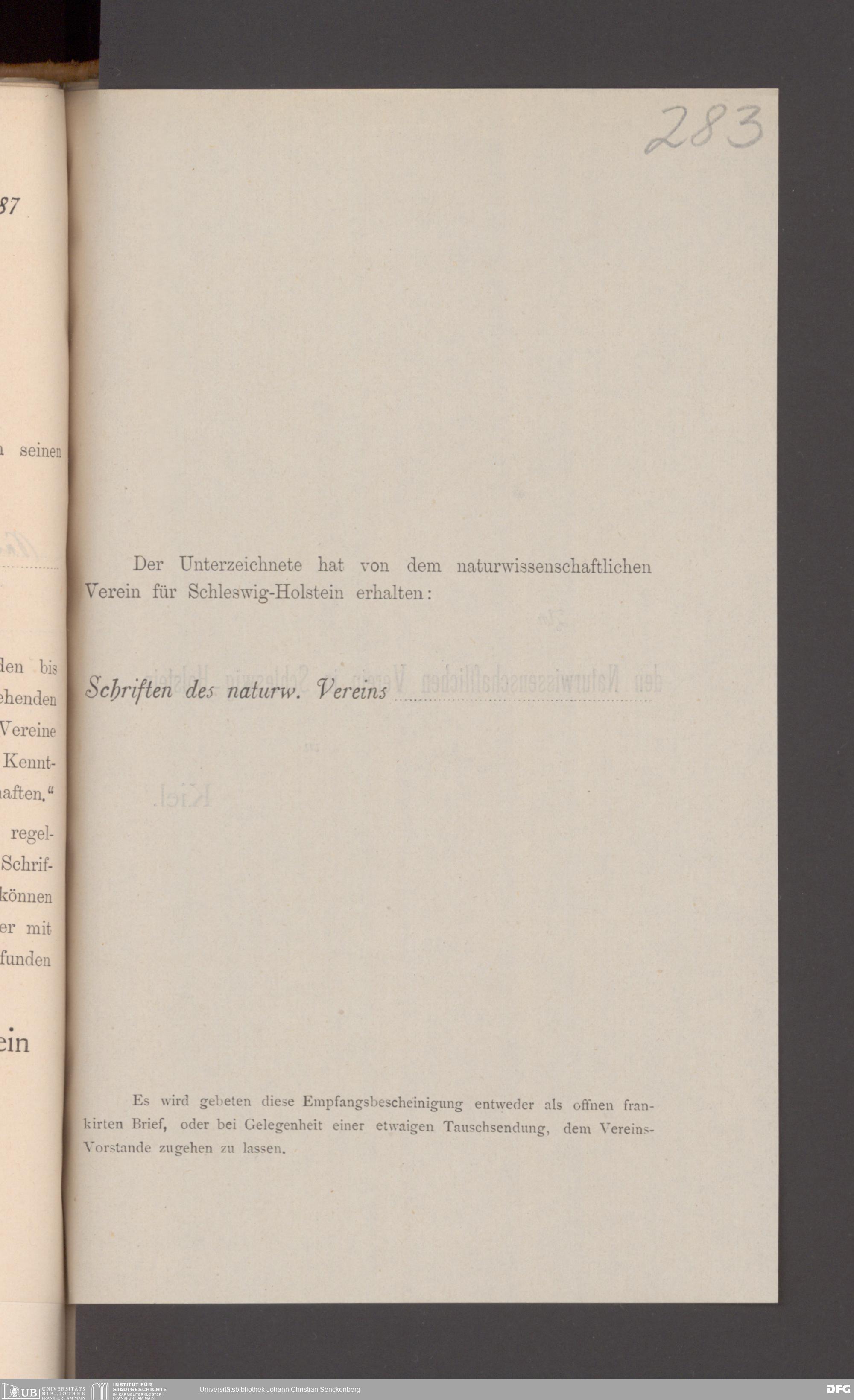 V176 Senckenberg Gesellschaft für Naturforschung, 17 - Korrespondenz über den Schriftentausch mit naturwissenschaftlichen Vereinigungen mit Ortsindex, Bd. 1