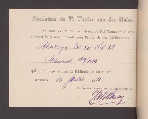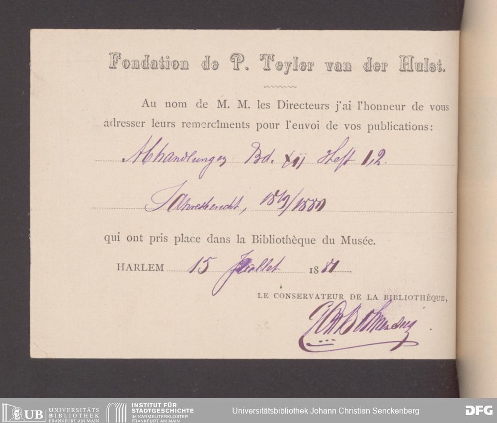 V176 Senckenberg Gesellschaft für Naturforschung, 17 - Korrespondenz über den Schriftentausch mit naturwissenschaftlichen Vereinigungen mit Ortsindex, Bd. 1