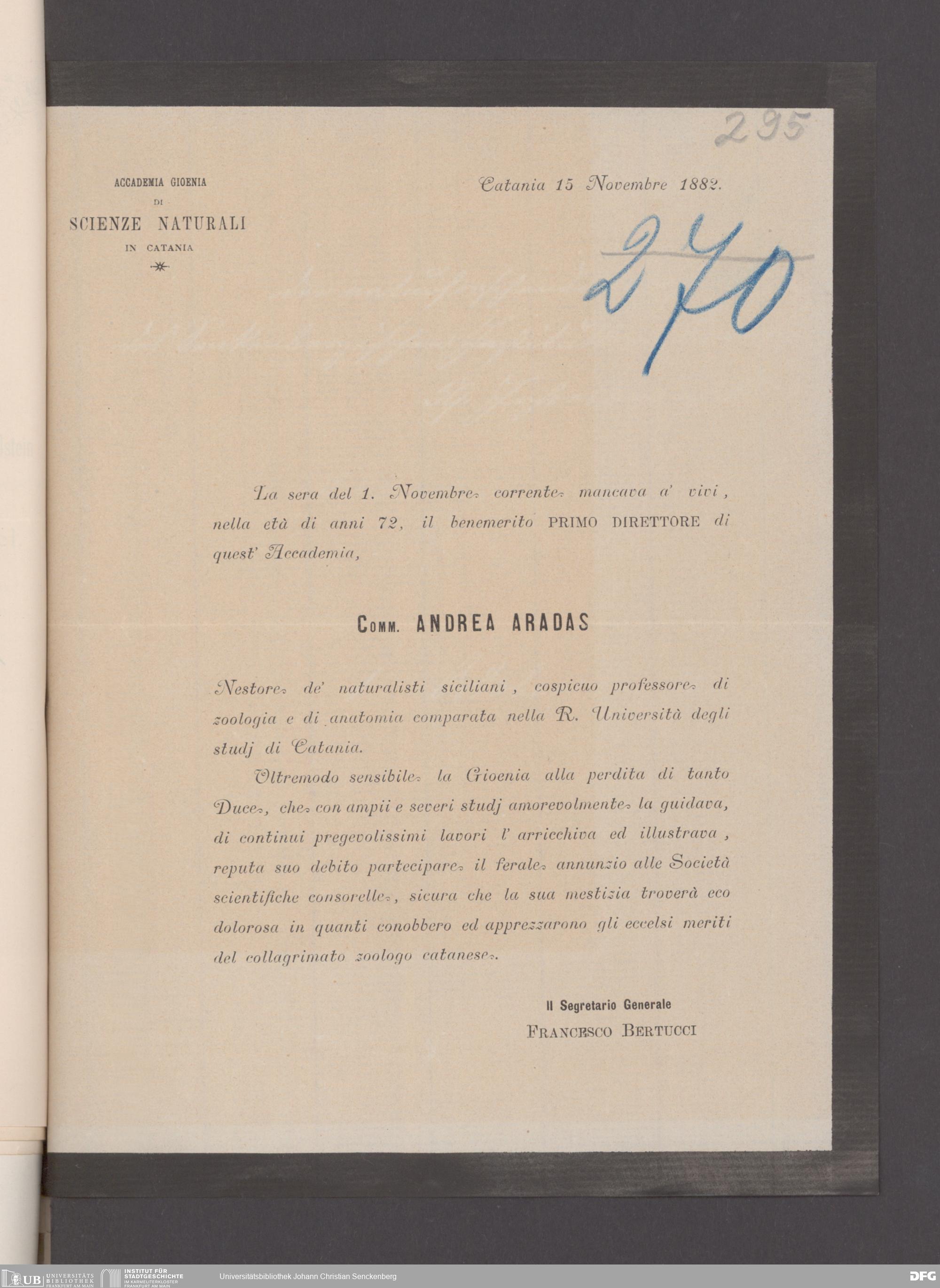 V176 Senckenberg Gesellschaft für Naturforschung, 17 - Korrespondenz über den Schriftentausch mit naturwissenschaftlichen Vereinigungen mit Ortsindex, Bd. 1