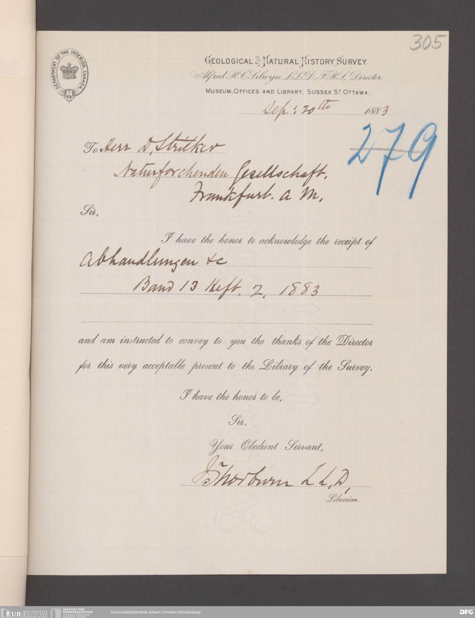V176 Senckenberg Gesellschaft für Naturforschung, 17 - Korrespondenz über den Schriftentausch mit naturwissenschaftlichen Vereinigungen mit Ortsindex, Bd. 1