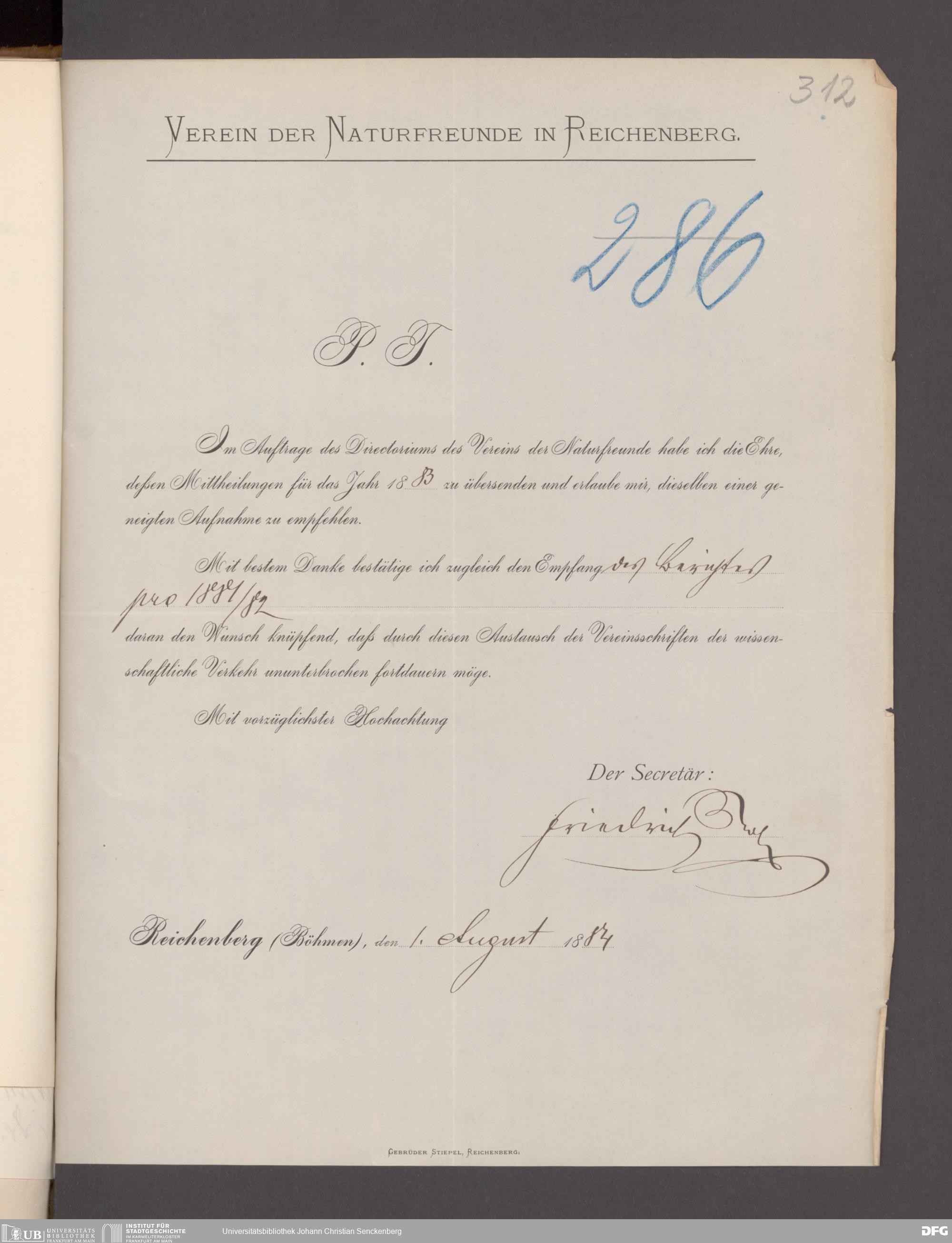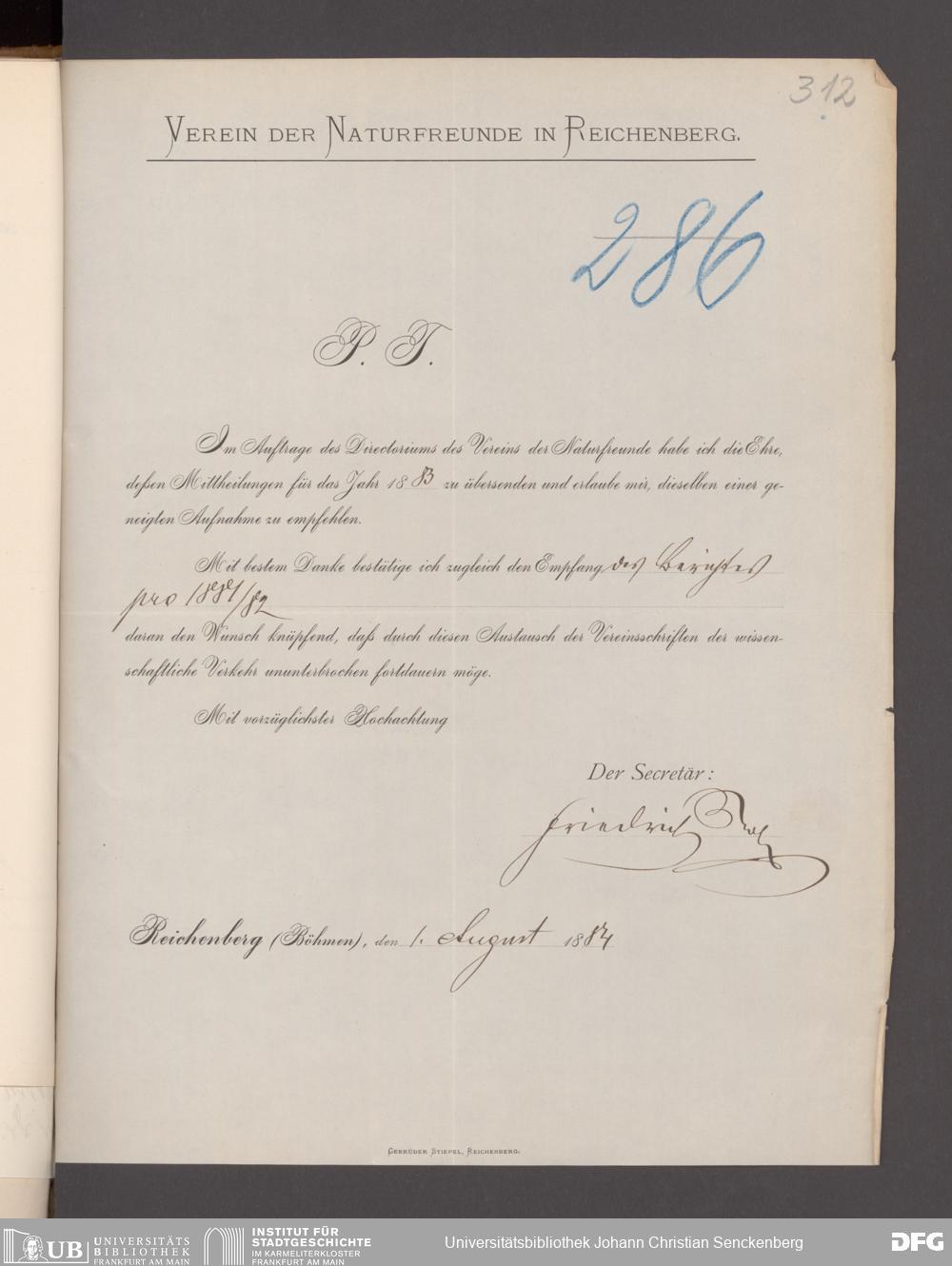 V176 Senckenberg Gesellschaft für Naturforschung, 17 - Korrespondenz über den Schriftentausch mit naturwissenschaftlichen Vereinigungen mit Ortsindex, Bd. 1