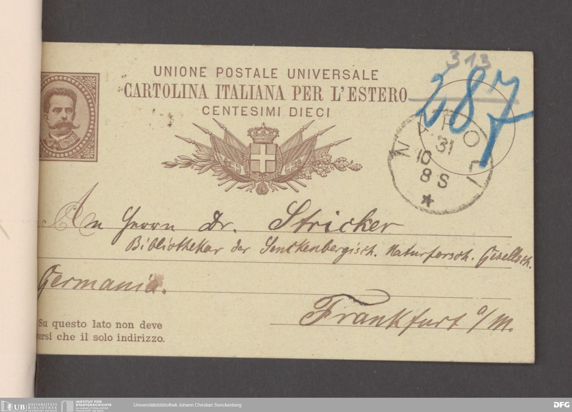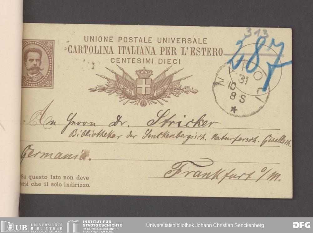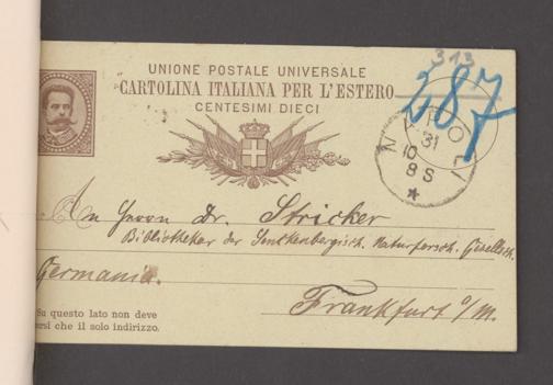 V176 Senckenberg Gesellschaft für Naturforschung, 17 - Korrespondenz über den Schriftentausch mit naturwissenschaftlichen Vereinigungen mit Ortsindex, Bd. 1