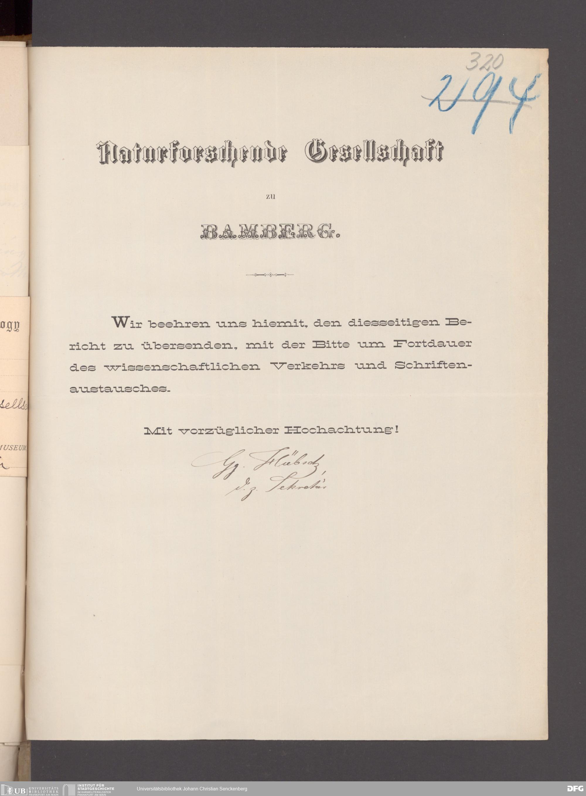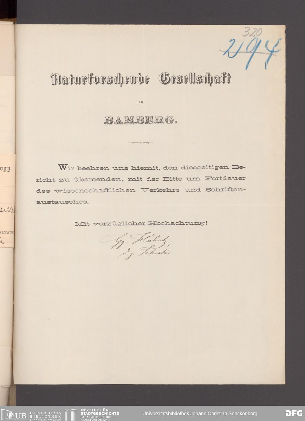 V176 Senckenberg Gesellschaft für Naturforschung, 17 - Korrespondenz über den Schriftentausch mit naturwissenschaftlichen Vereinigungen mit Ortsindex, Bd. 1