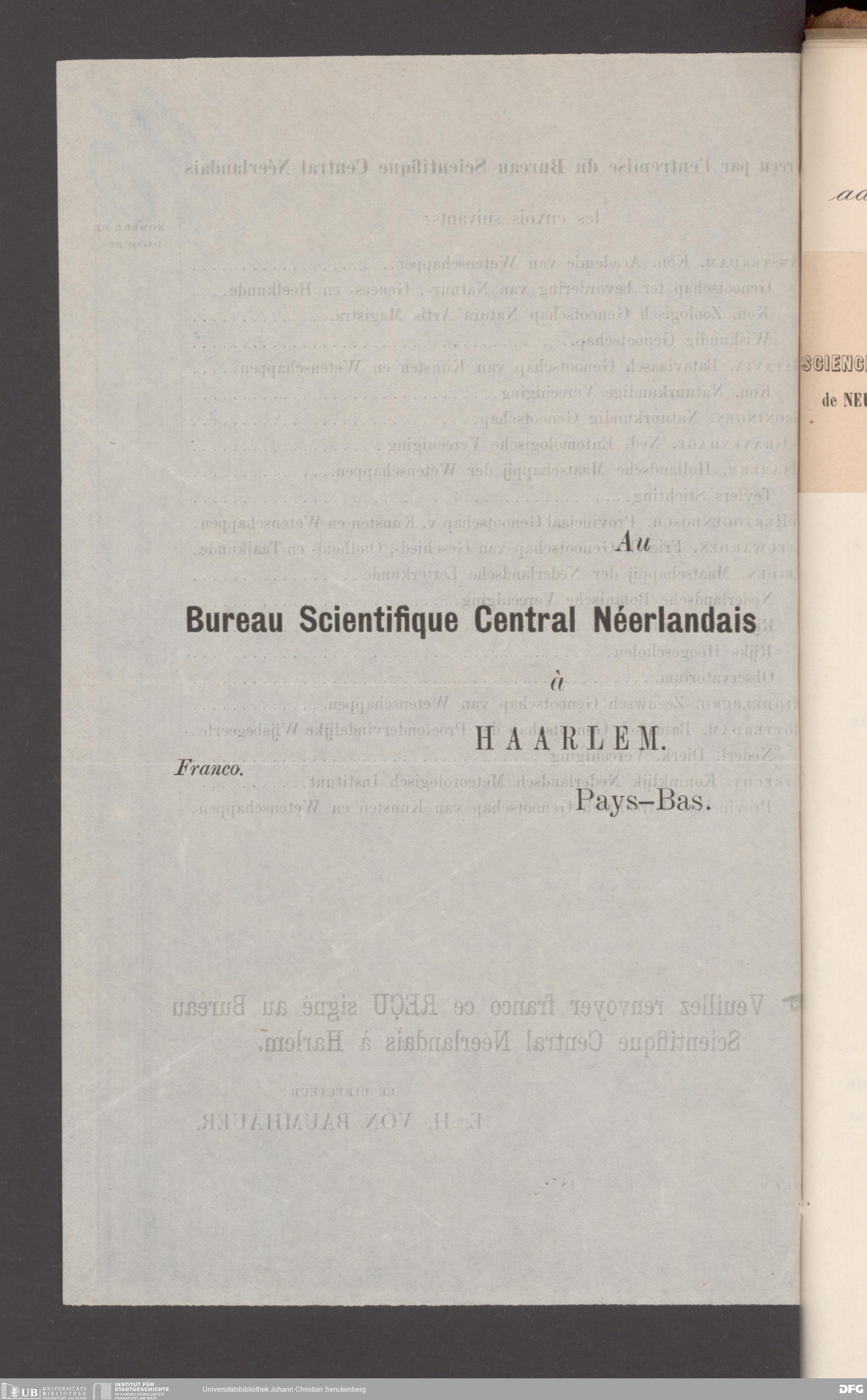 V176 Senckenberg Gesellschaft für Naturforschung, 17 - Korrespondenz über den Schriftentausch mit naturwissenschaftlichen Vereinigungen mit Ortsindex, Bd. 1