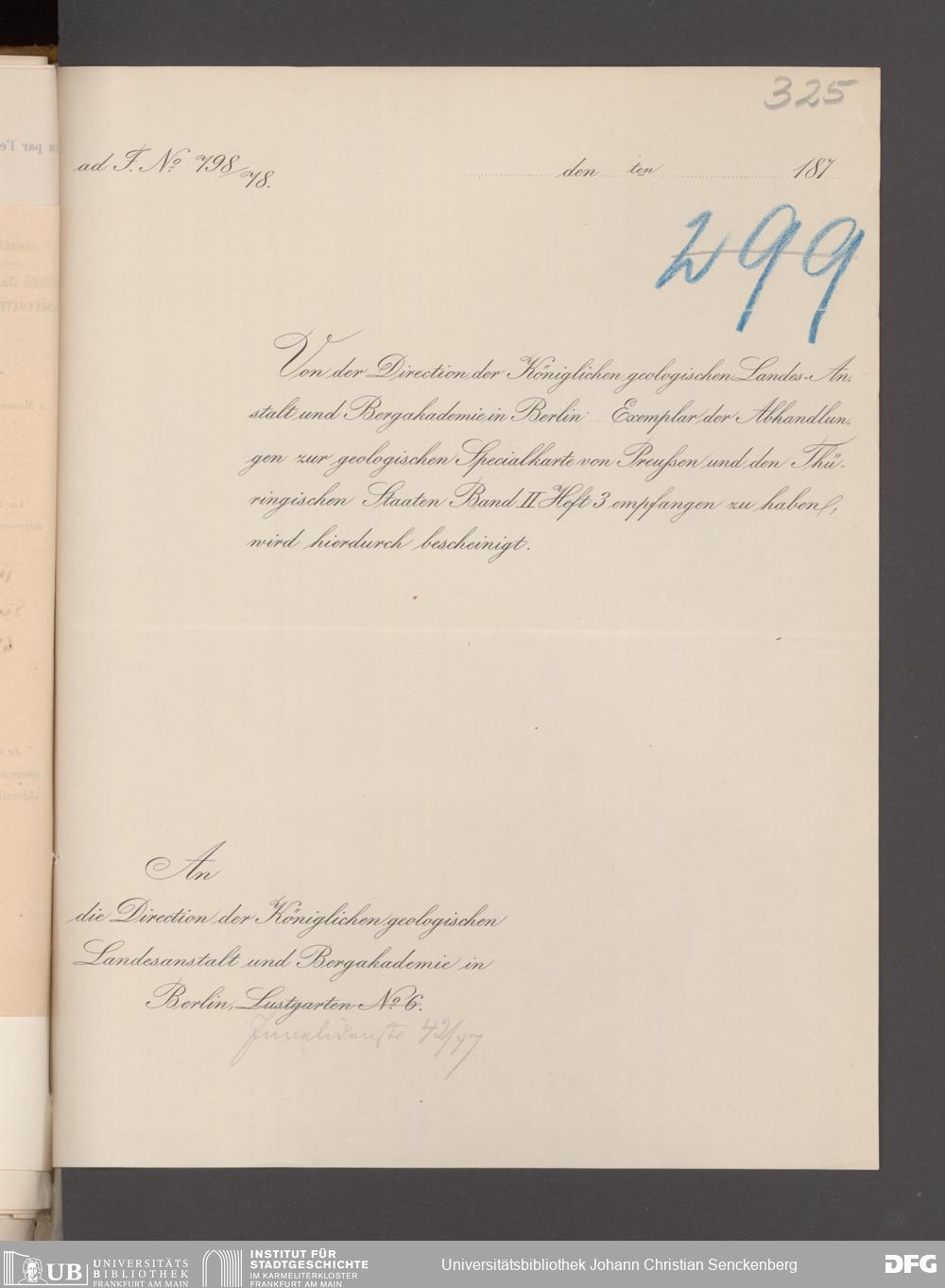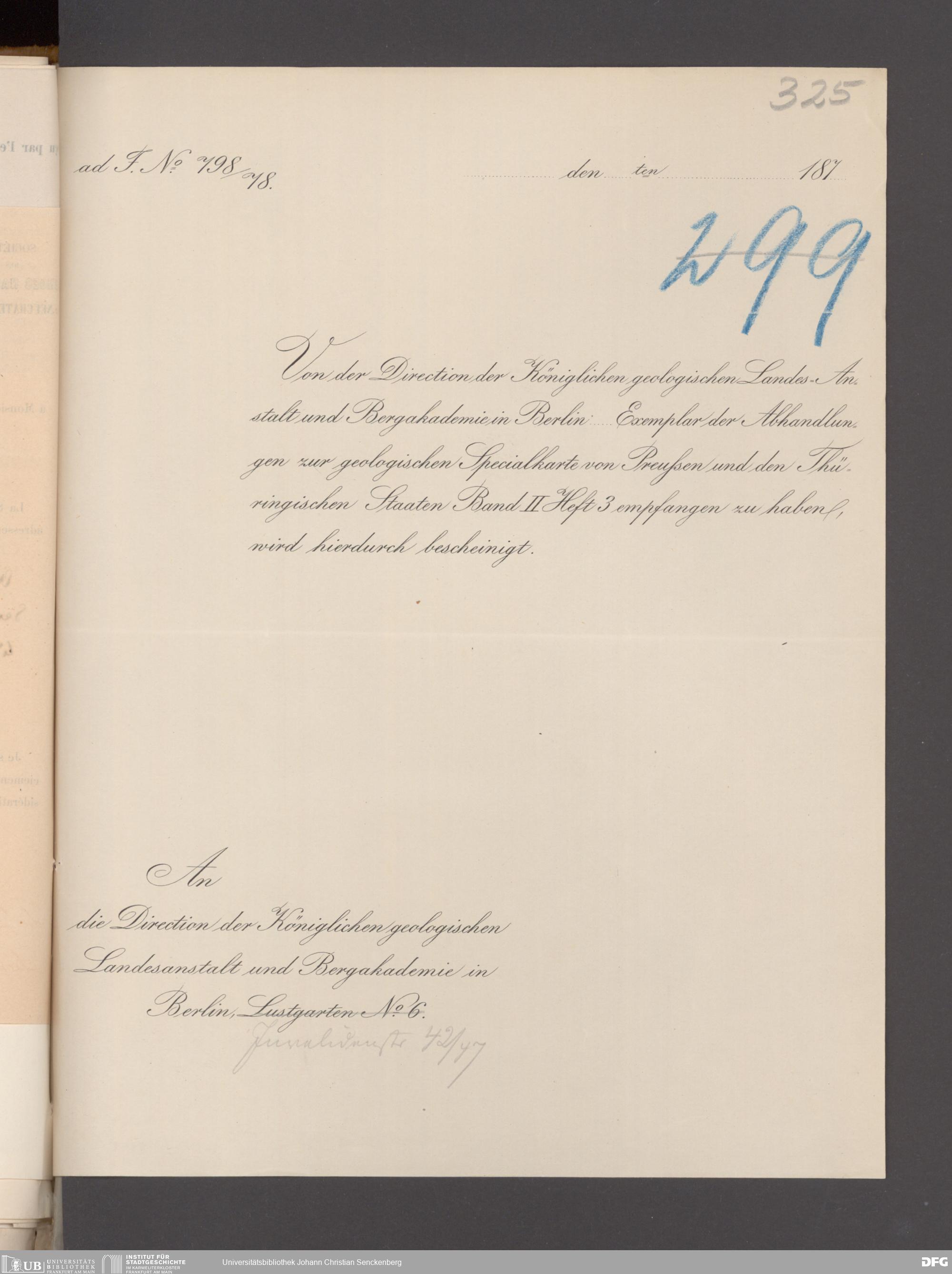 V176 Senckenberg Gesellschaft für Naturforschung, 17 - Korrespondenz über den Schriftentausch mit naturwissenschaftlichen Vereinigungen mit Ortsindex, Bd. 1
