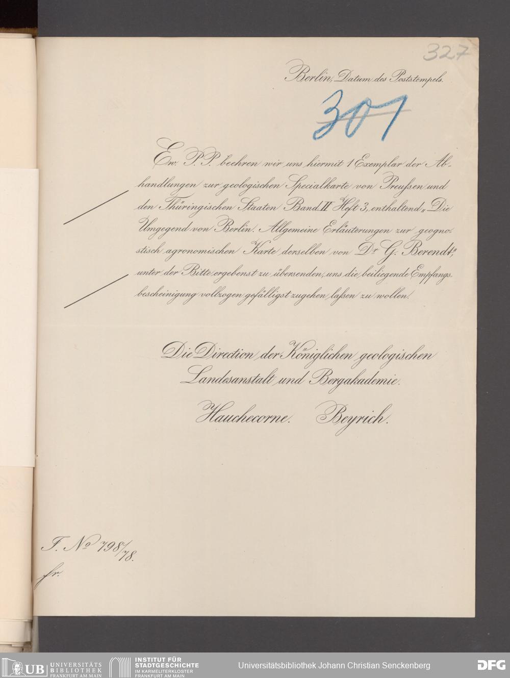 V176 Senckenberg Gesellschaft für Naturforschung, 17 - Korrespondenz über den Schriftentausch mit naturwissenschaftlichen Vereinigungen mit Ortsindex, Bd. 1