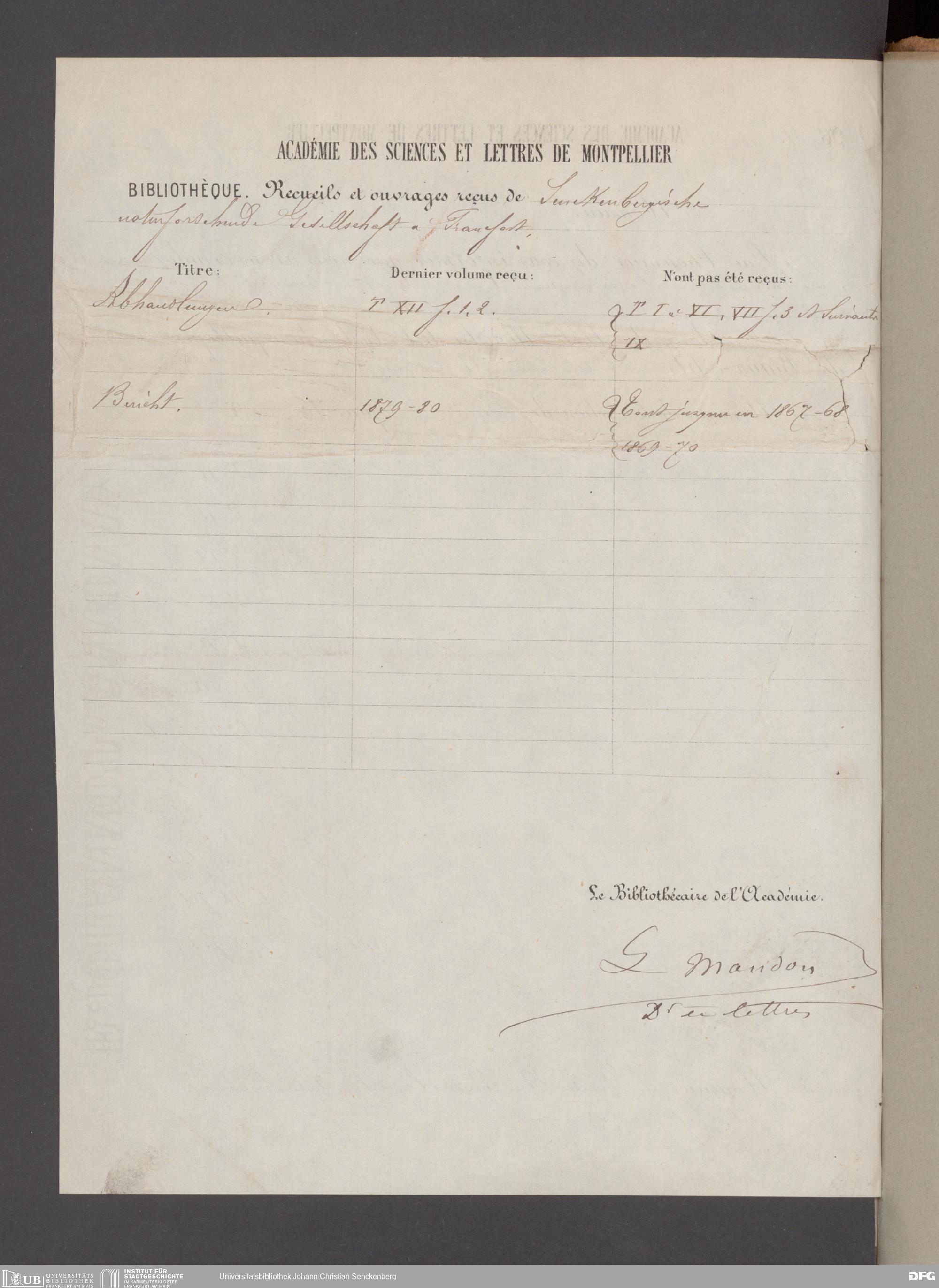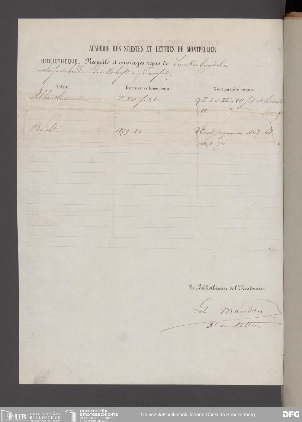 V176 Senckenberg Gesellschaft für Naturforschung, 17 - Korrespondenz über den Schriftentausch mit naturwissenschaftlichen Vereinigungen mit Ortsindex, Bd. 1