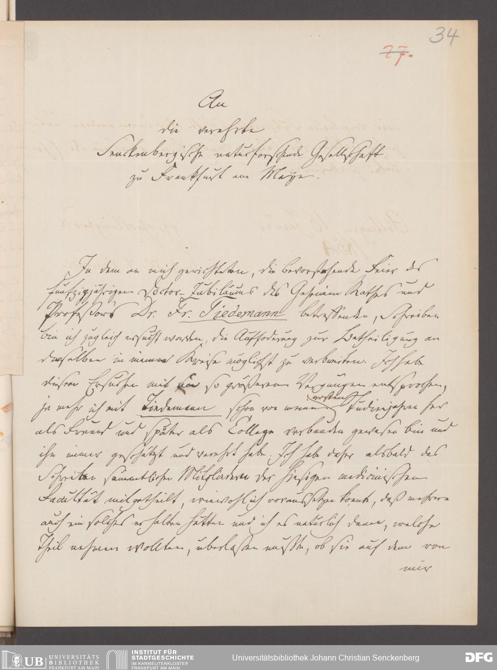 V176 Senckenberg Gesellschaft für Naturforschung, 25 - Festveranstaltung zum fünfzigjährigen Doktorjubiläum von Friedrich Tiedemann