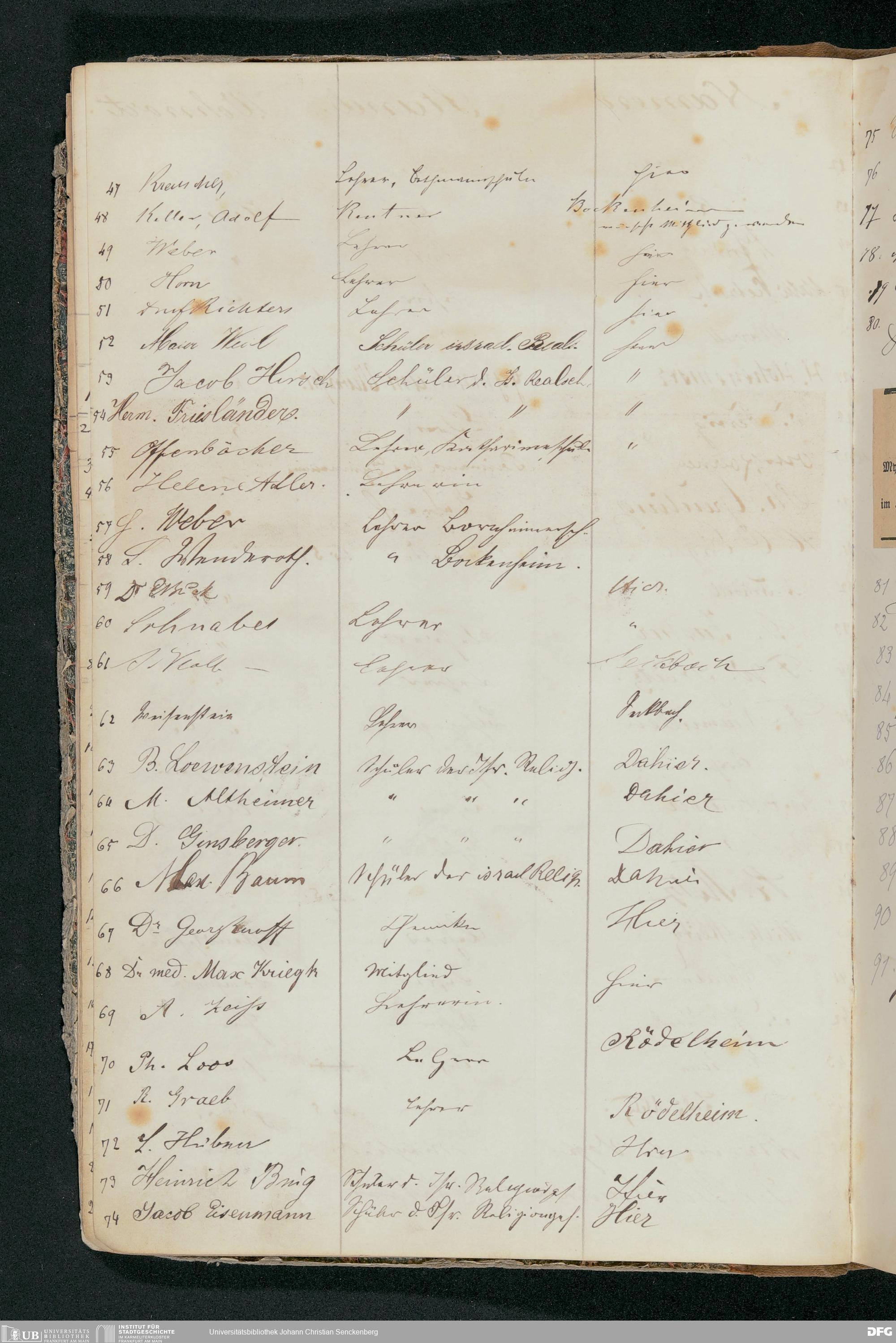 V176 Senckenberg Gesellschaft für Naturforschung, 56 - Teilnehmerlisten der Zoologievorlesungen, Bd. 1