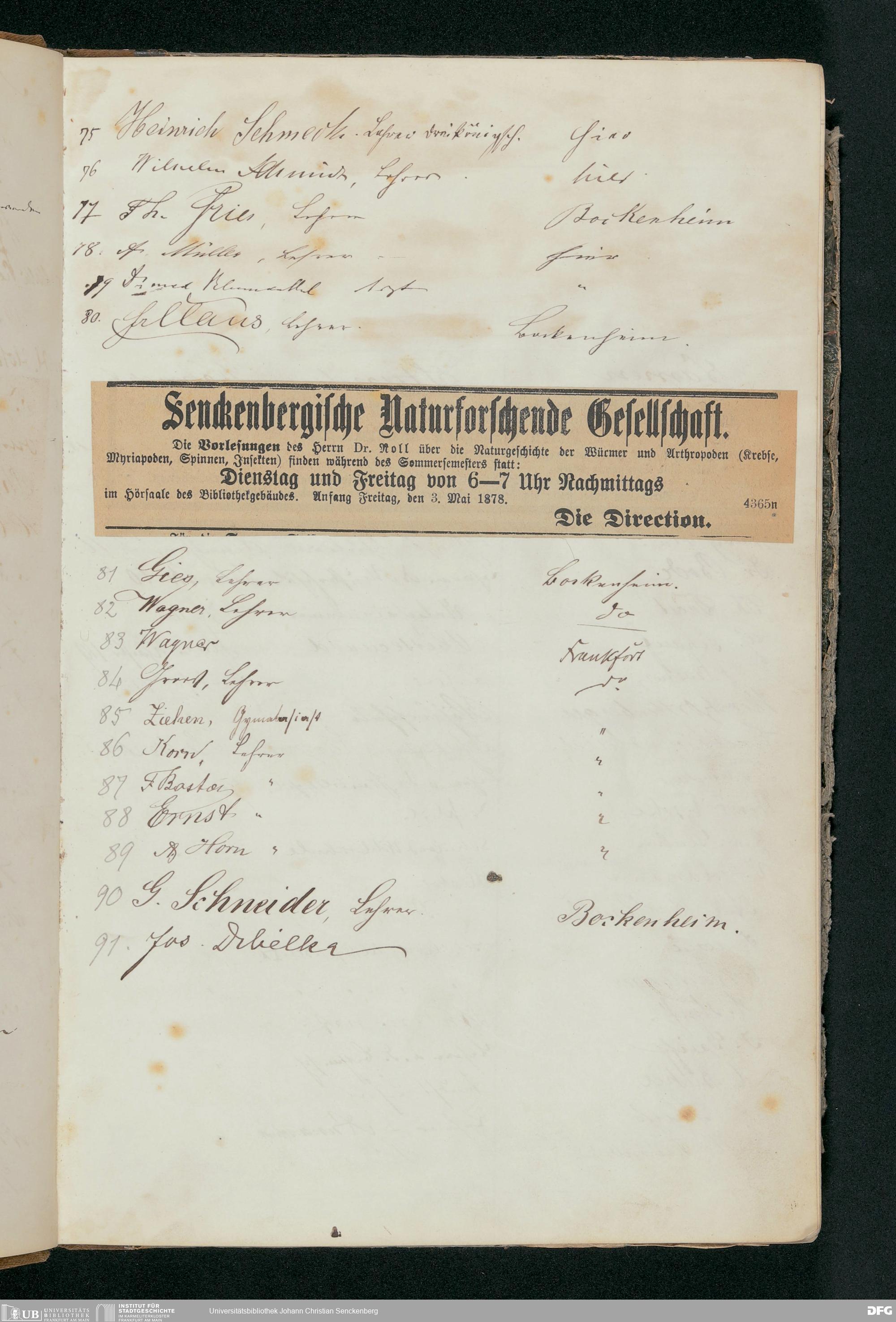 V176 Senckenberg Gesellschaft für Naturforschung, 56 - Teilnehmerlisten der Zoologievorlesungen, Bd. 1