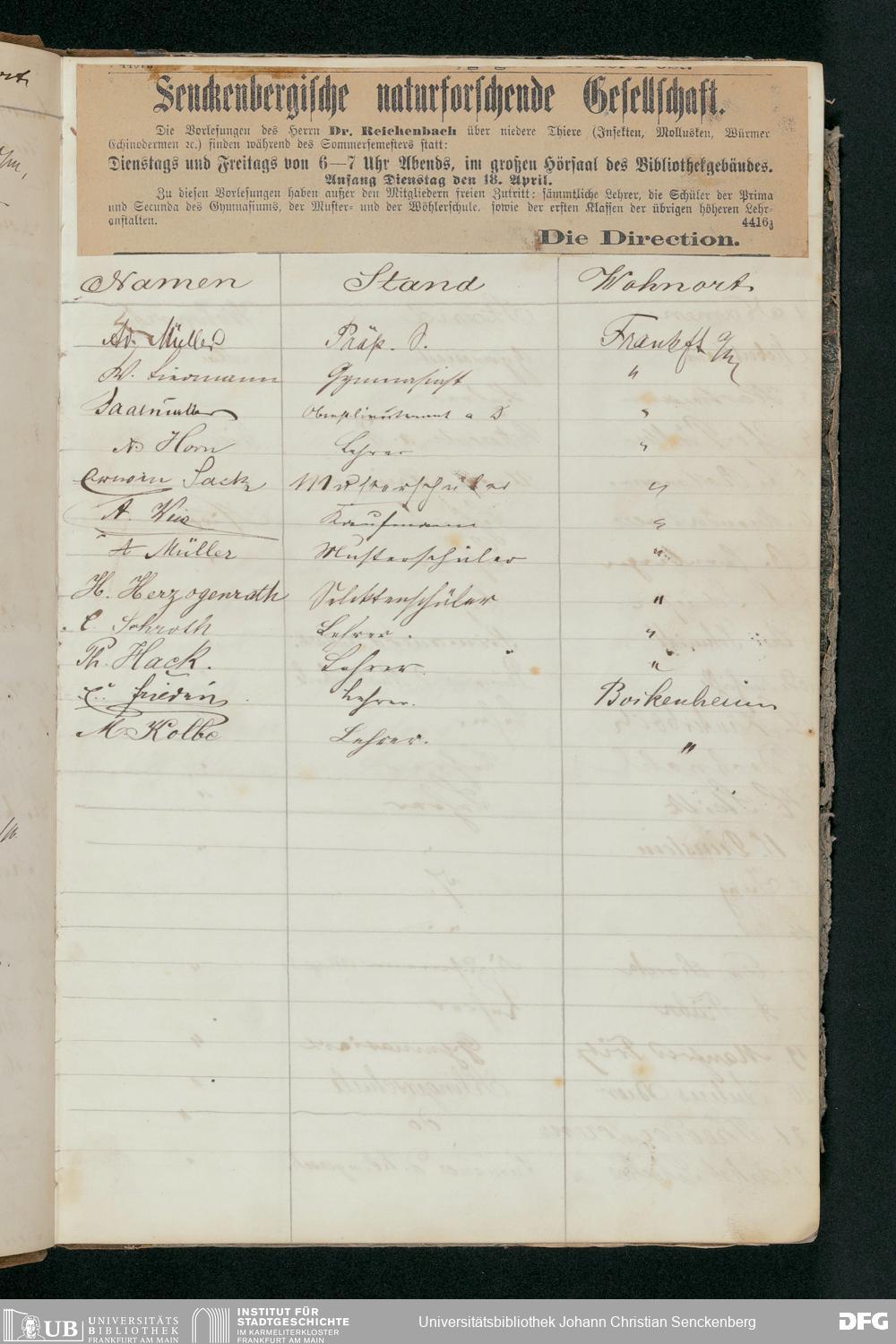 V176 Senckenberg Gesellschaft für Naturforschung, 56 - Teilnehmerlisten der Zoologievorlesungen, Bd. 1