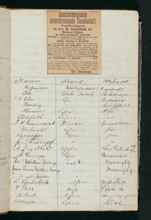 V176 Senckenberg Gesellschaft für Naturforschung, 56 - Teilnehmerlisten der Zoologievorlesungen, Bd. 1