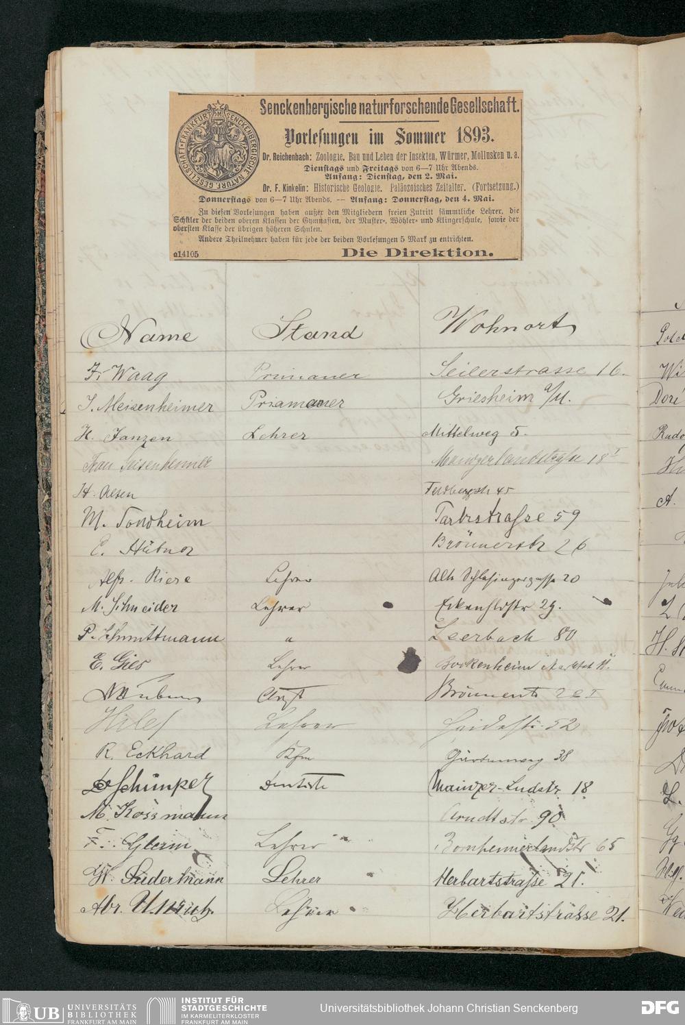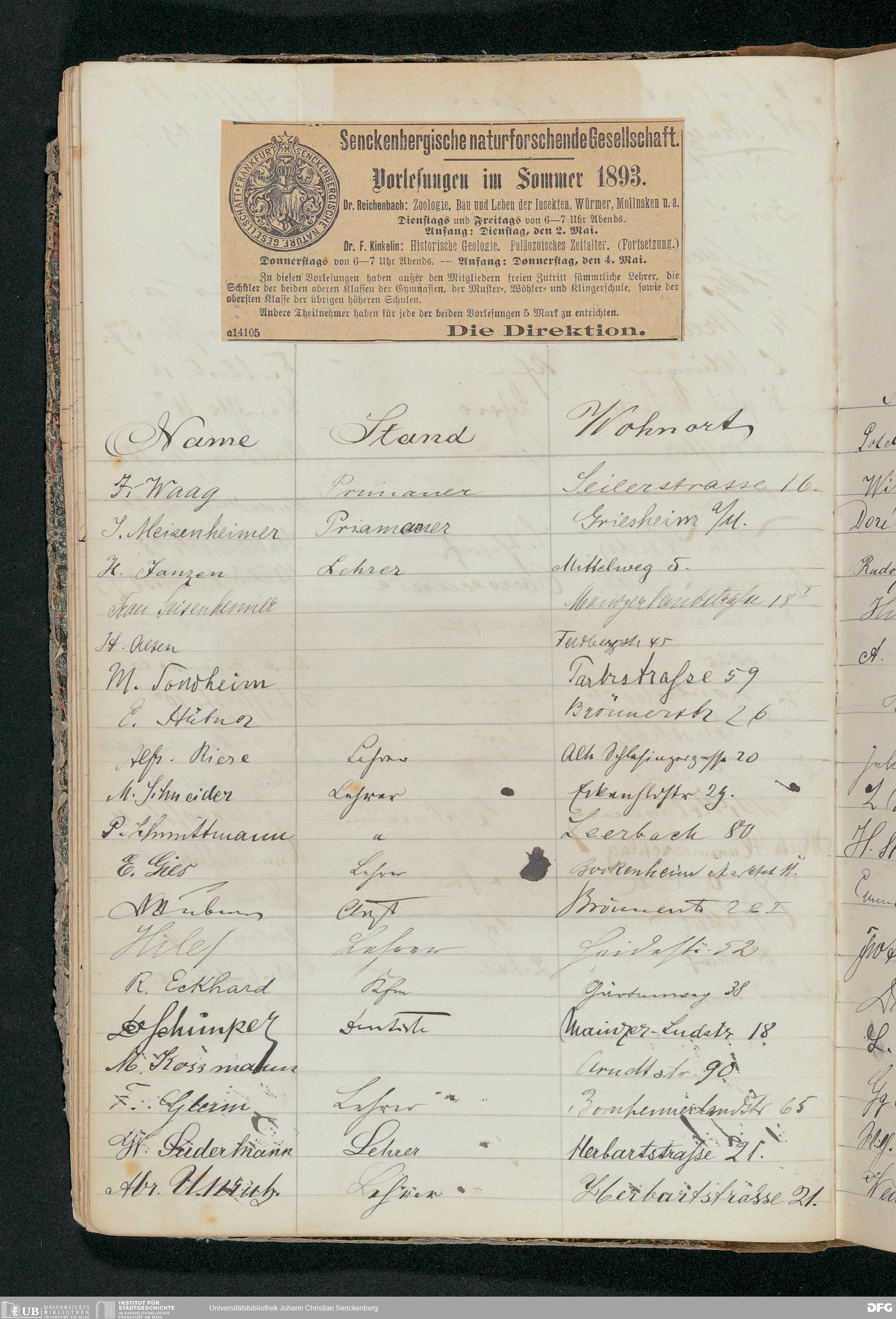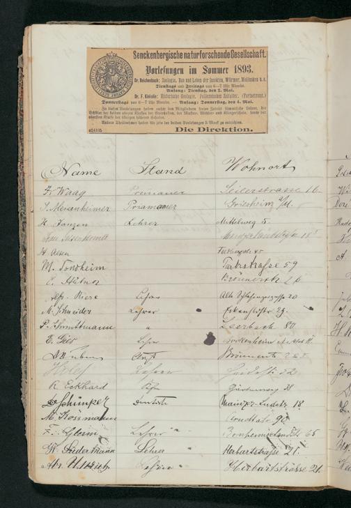 V176 Senckenberg Gesellschaft für Naturforschung, 56 - Teilnehmerlisten der Zoologievorlesungen, Bd. 1