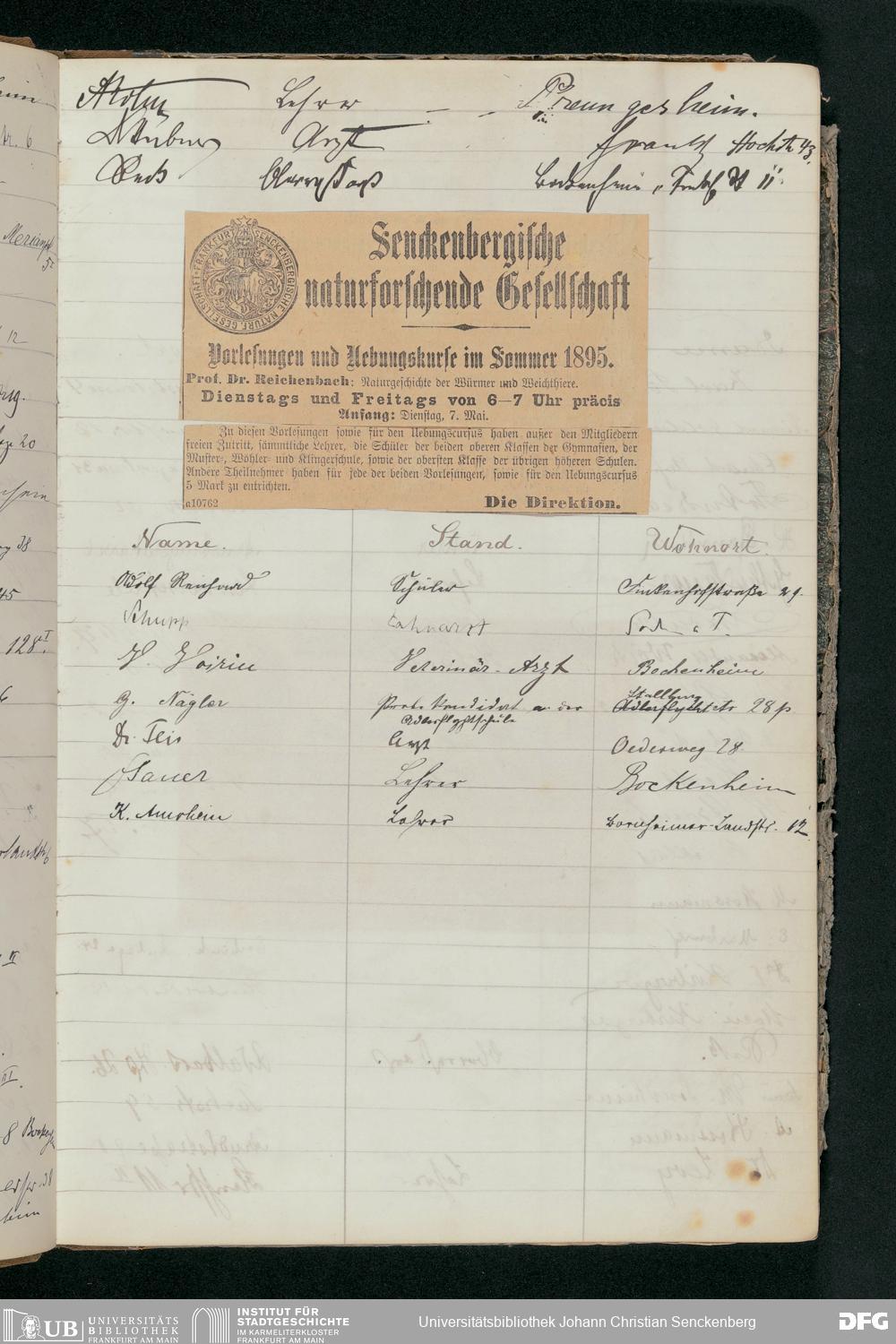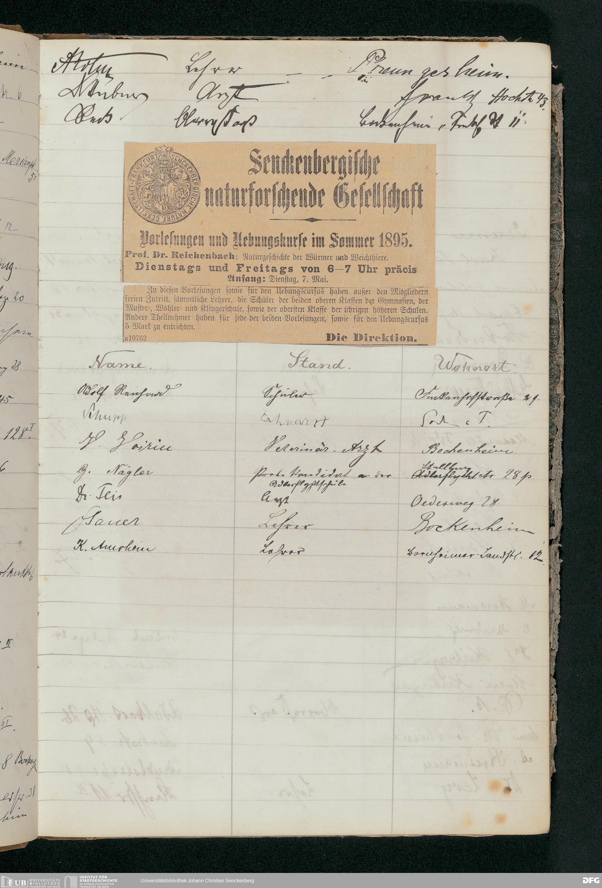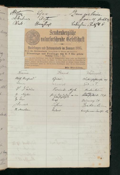 V176 Senckenberg Gesellschaft für Naturforschung, 56 - Teilnehmerlisten der Zoologievorlesungen, Bd. 1