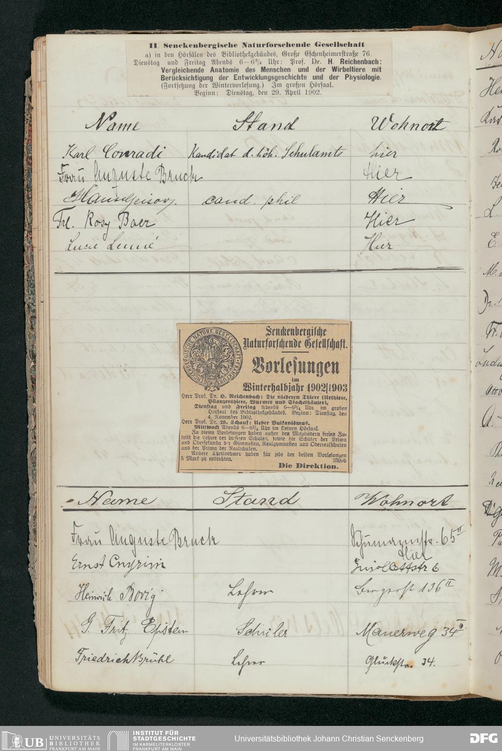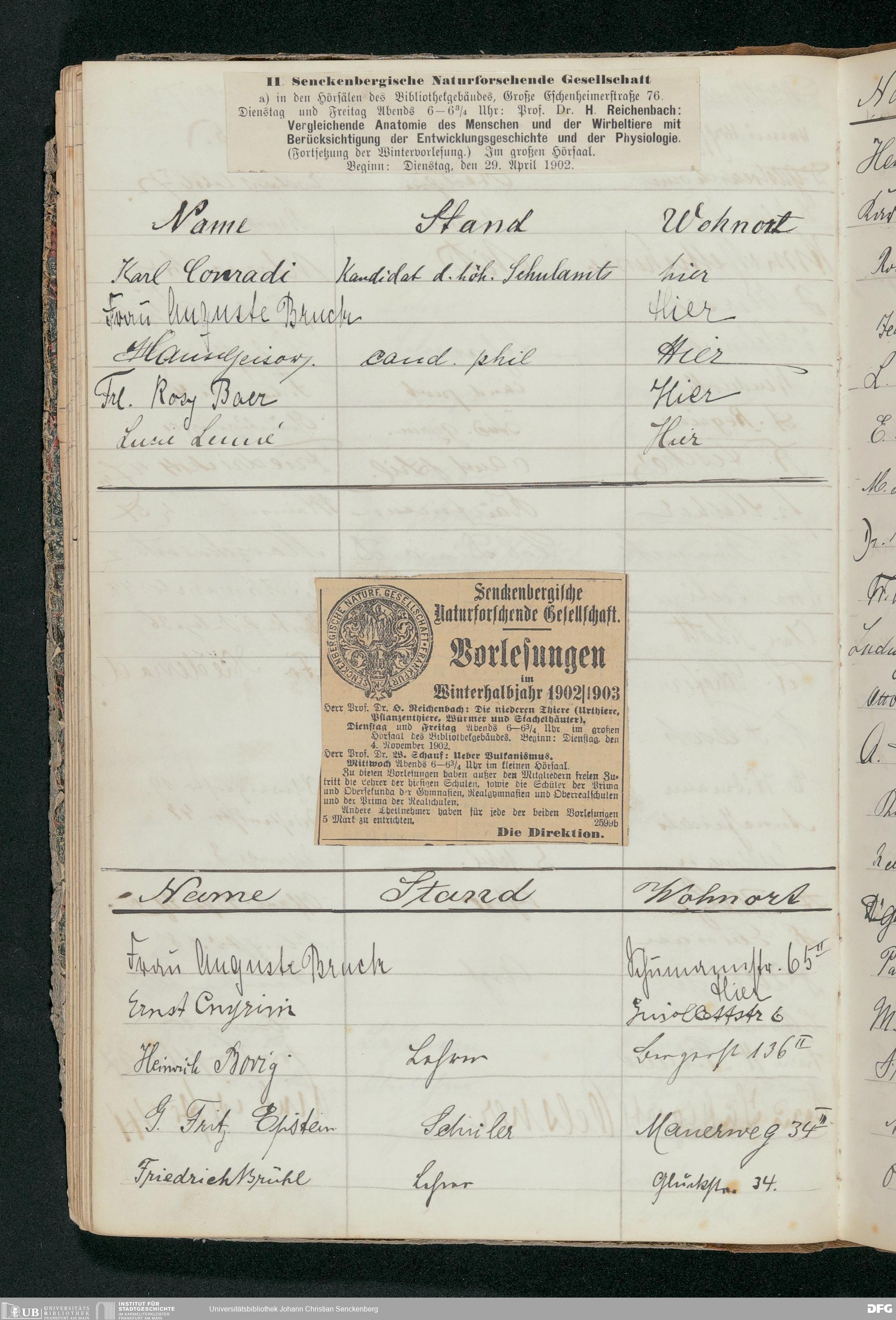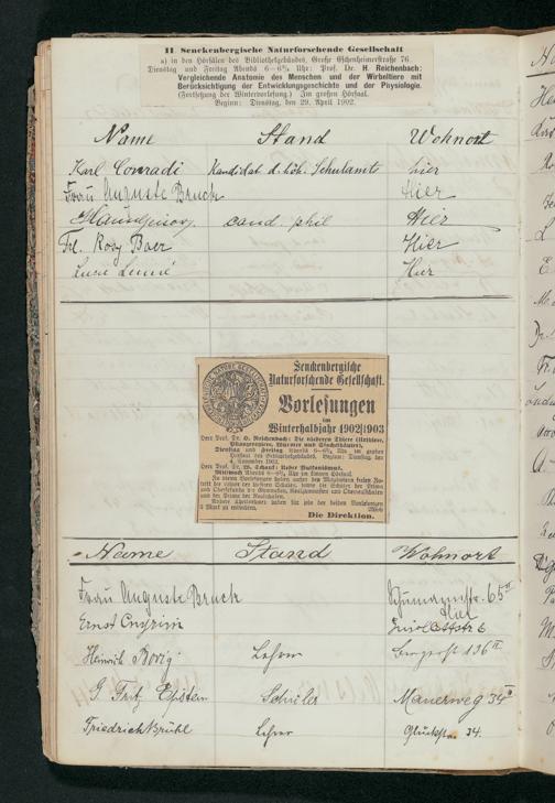 V176 Senckenberg Gesellschaft für Naturforschung, 56 - Teilnehmerlisten der Zoologievorlesungen, Bd. 1