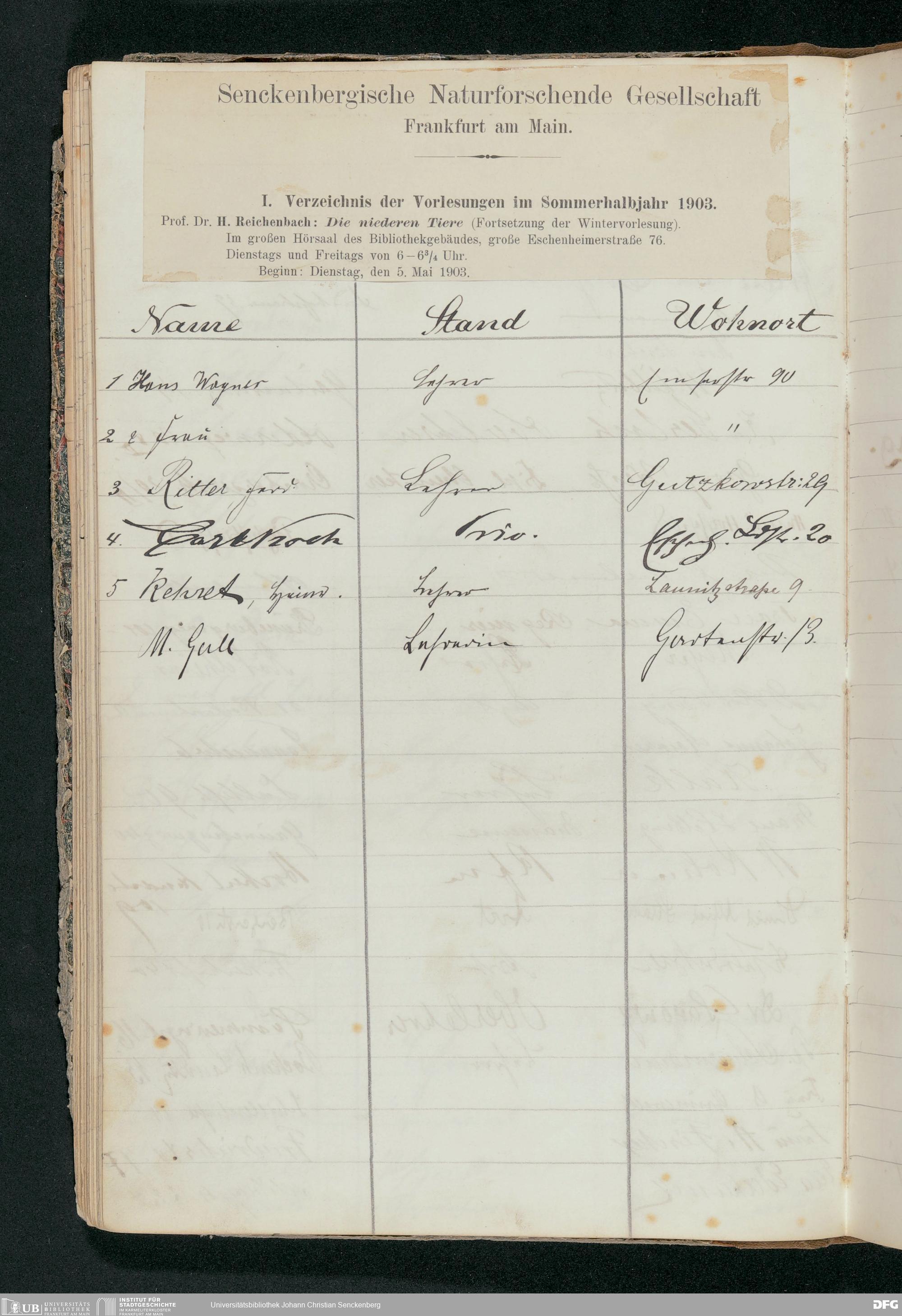 V176 Senckenberg Gesellschaft für Naturforschung, 56 - Teilnehmerlisten der Zoologievorlesungen, Bd. 1