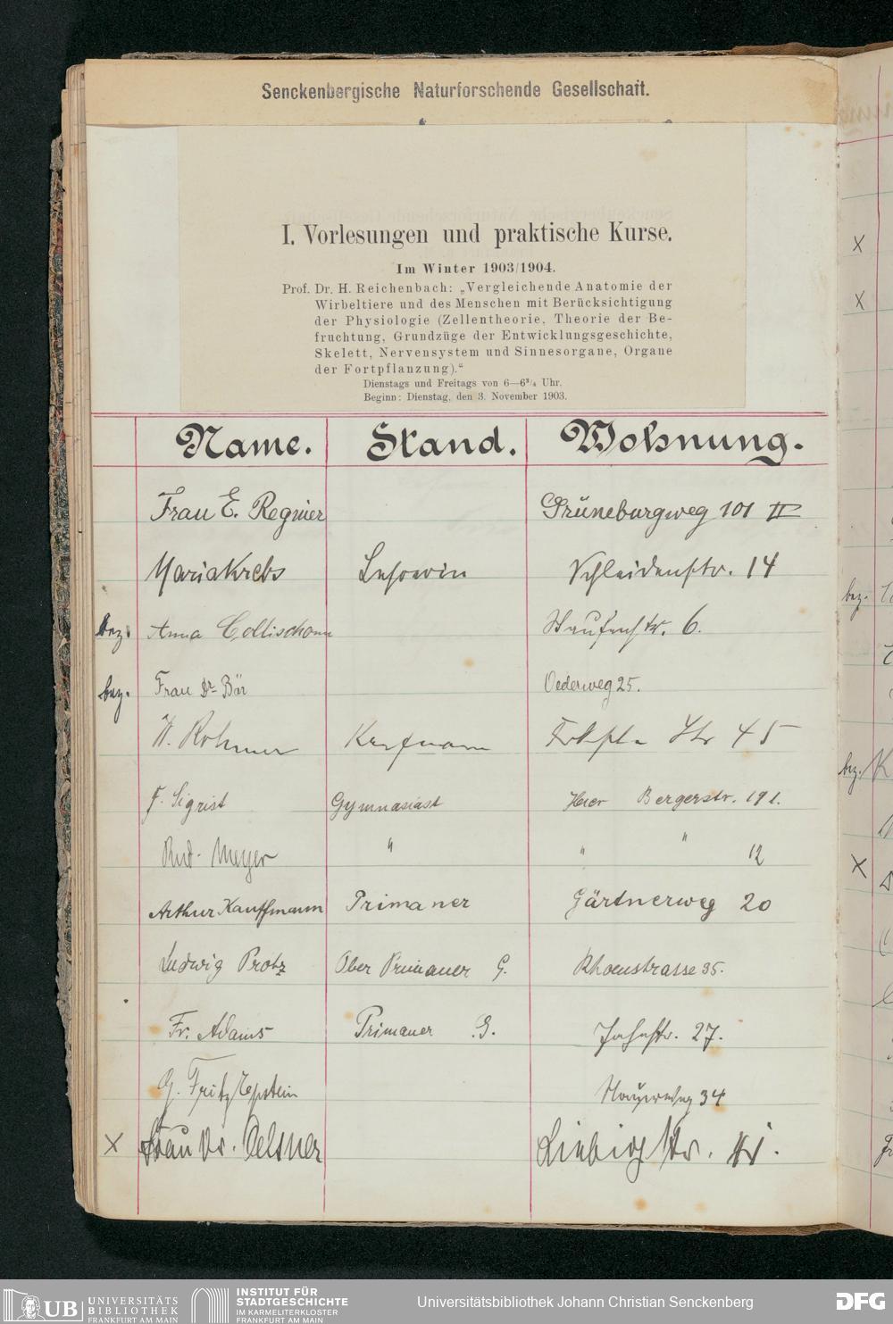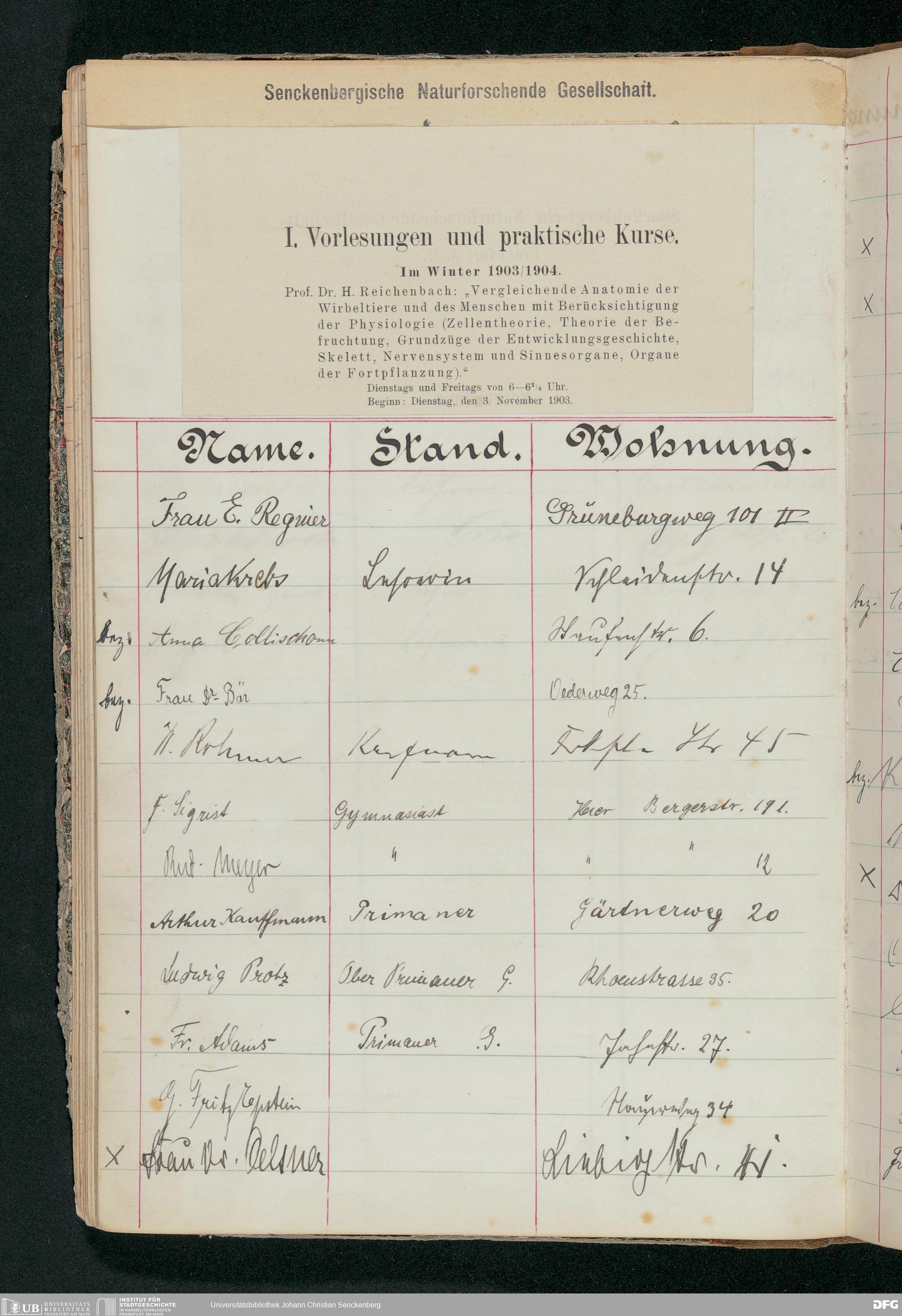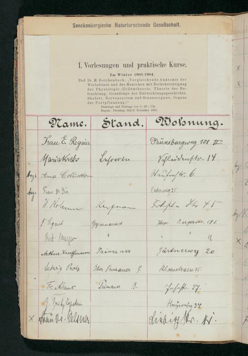 V176 Senckenberg Gesellschaft für Naturforschung, 56 - Teilnehmerlisten der Zoologievorlesungen, Bd. 1