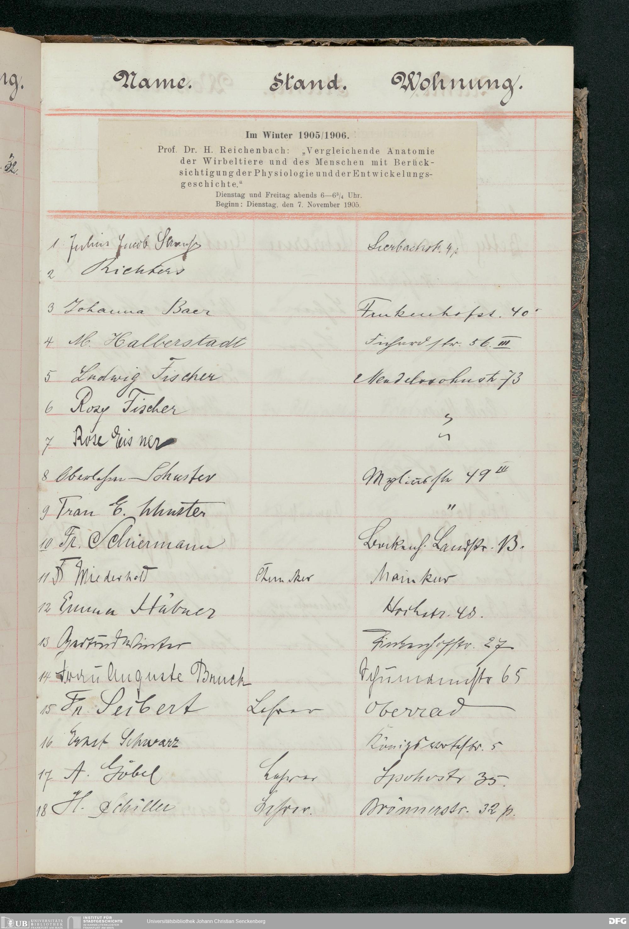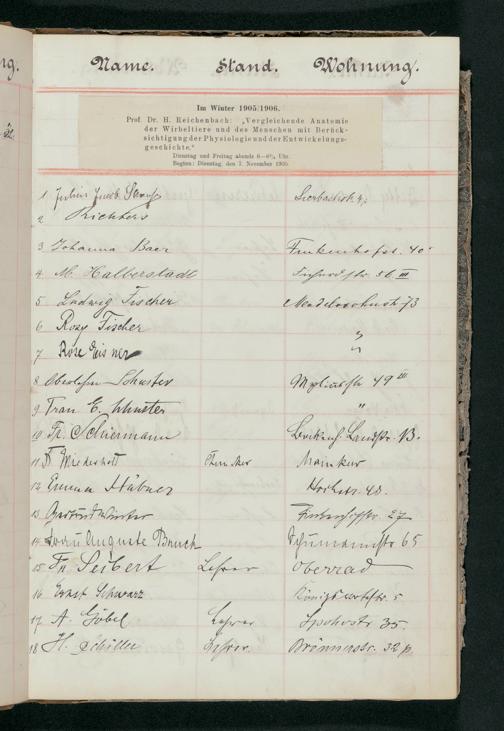 V176 Senckenberg Gesellschaft für Naturforschung, 56 - Teilnehmerlisten der Zoologievorlesungen, Bd. 1