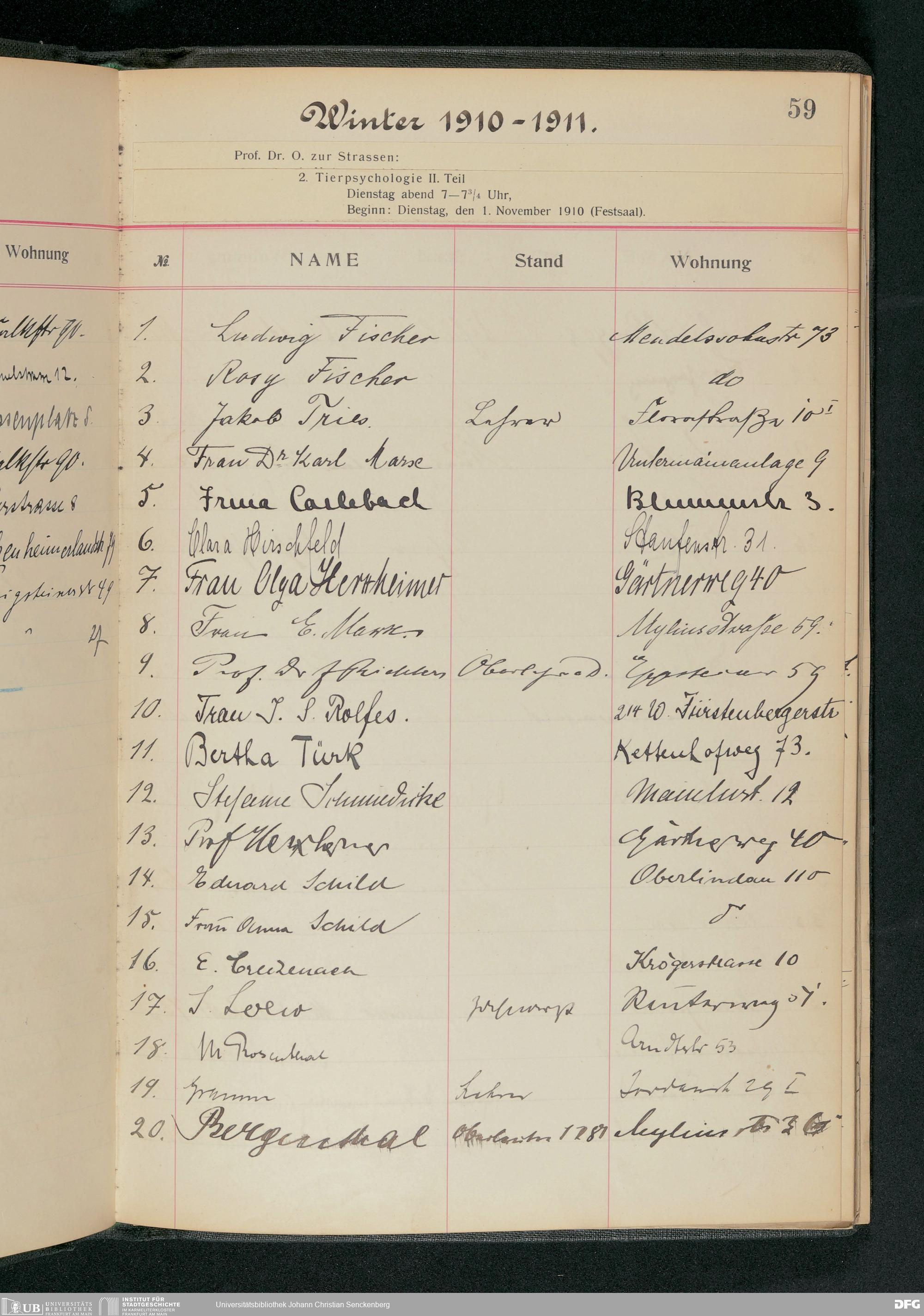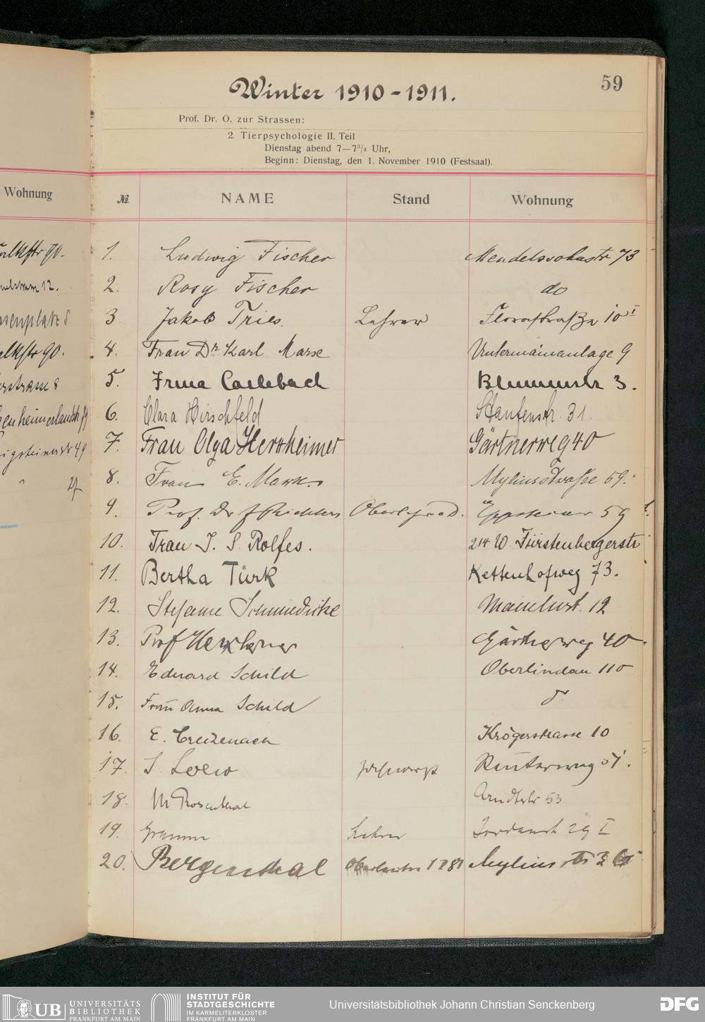 V176 Senckenberg Gesellschaft für Naturforschung, 57 - Teilnehmerlisten der Zoologievorlesungen, Bd. 2