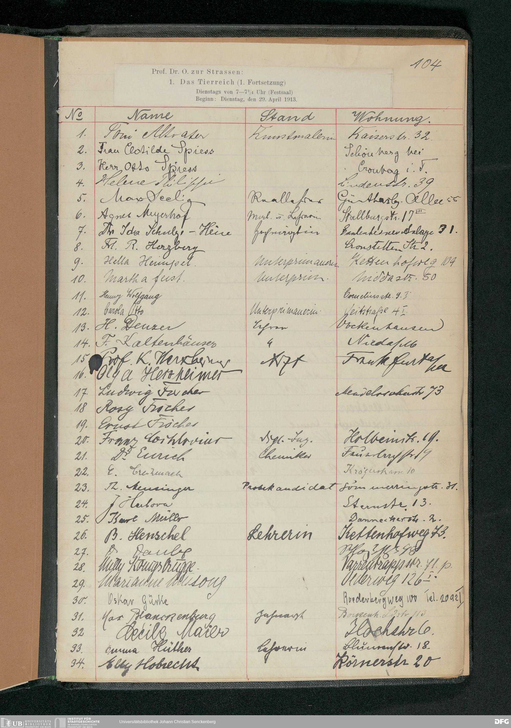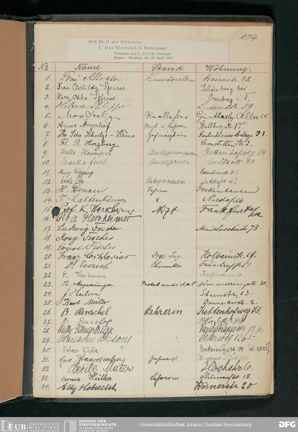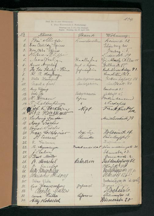 V176 Senckenberg Gesellschaft für Naturforschung, 57 - Teilnehmerlisten der Zoologievorlesungen, Bd. 2