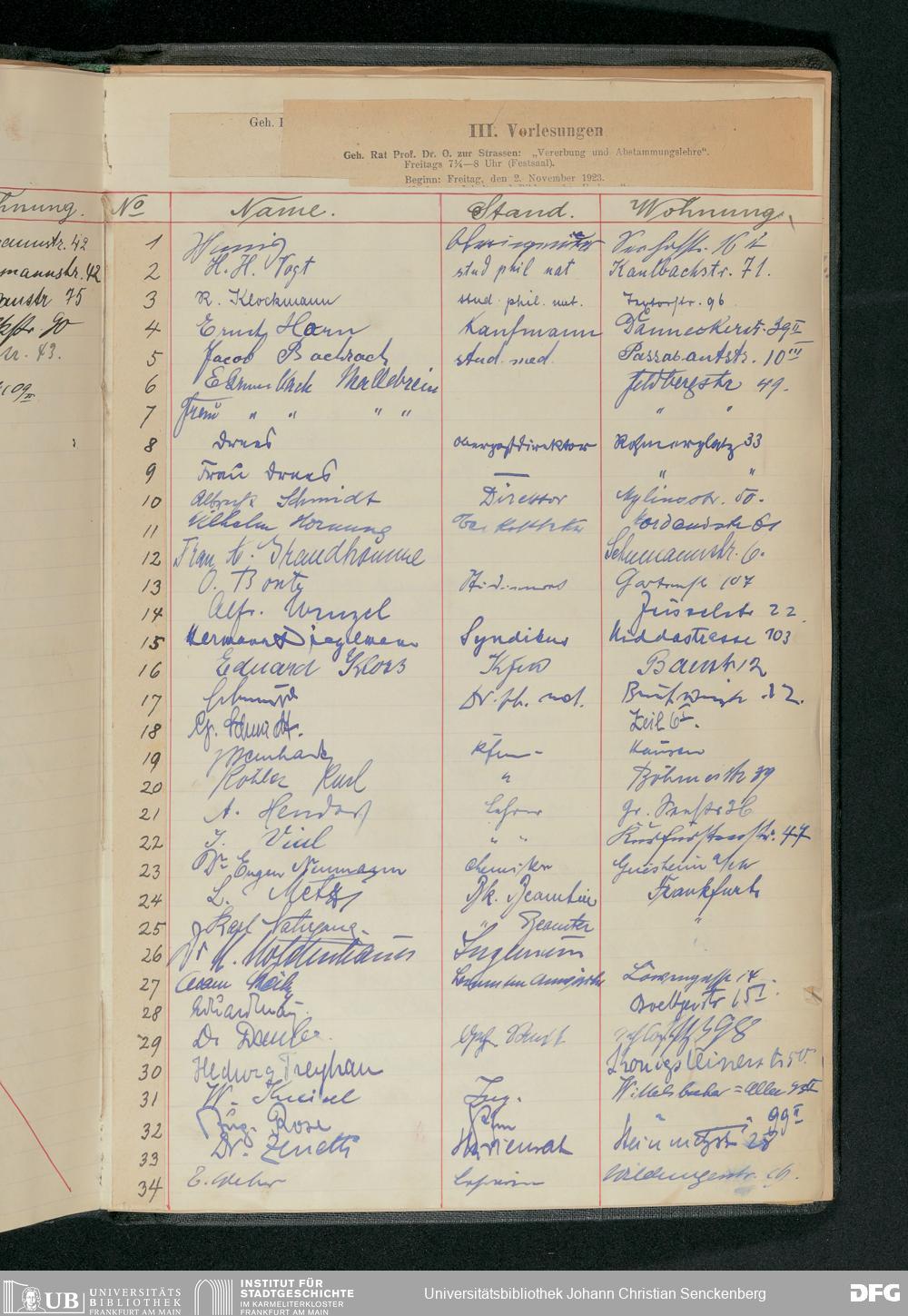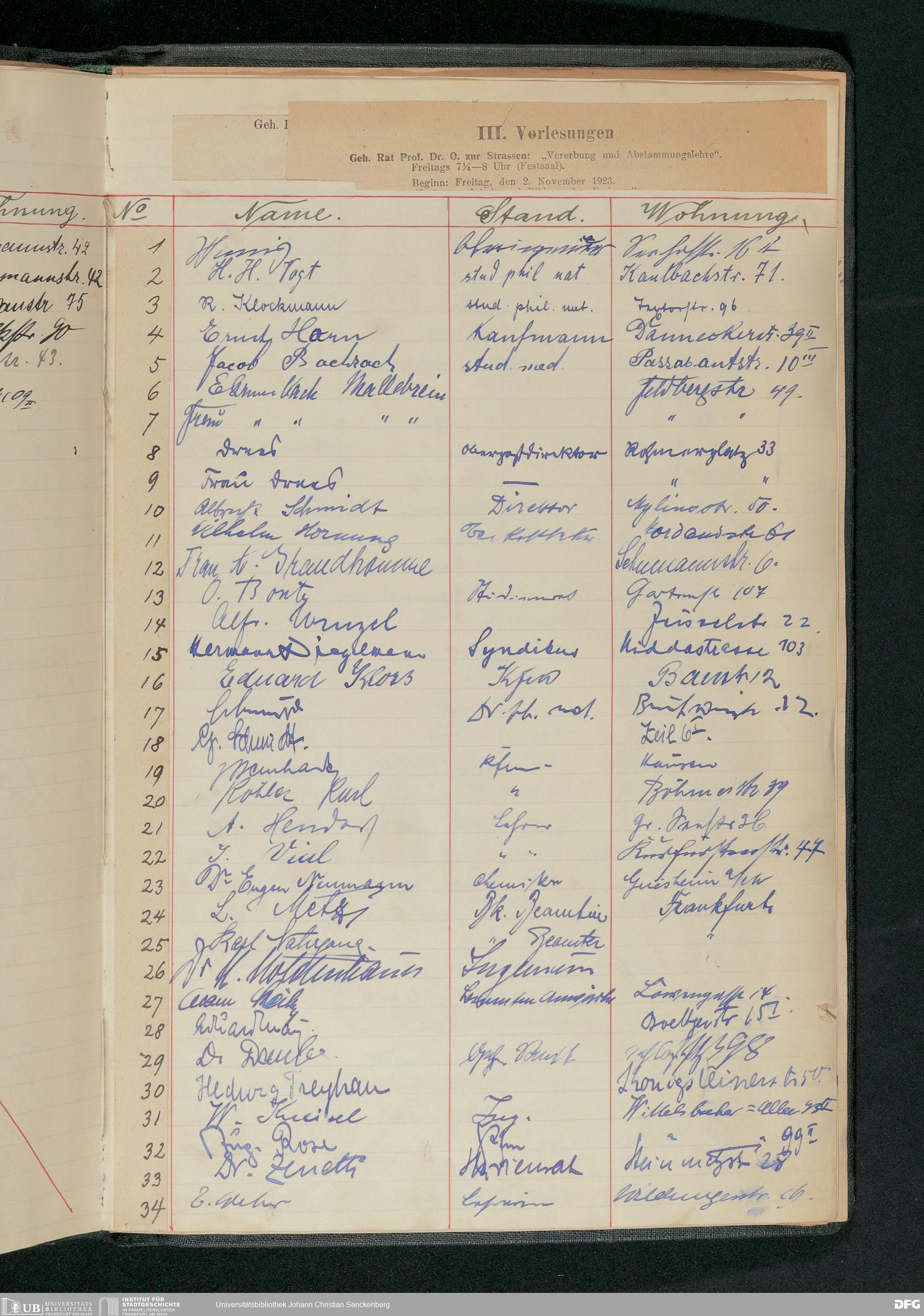 V176 Senckenberg Gesellschaft für Naturforschung, 57 - Teilnehmerlisten der Zoologievorlesungen, Bd. 2