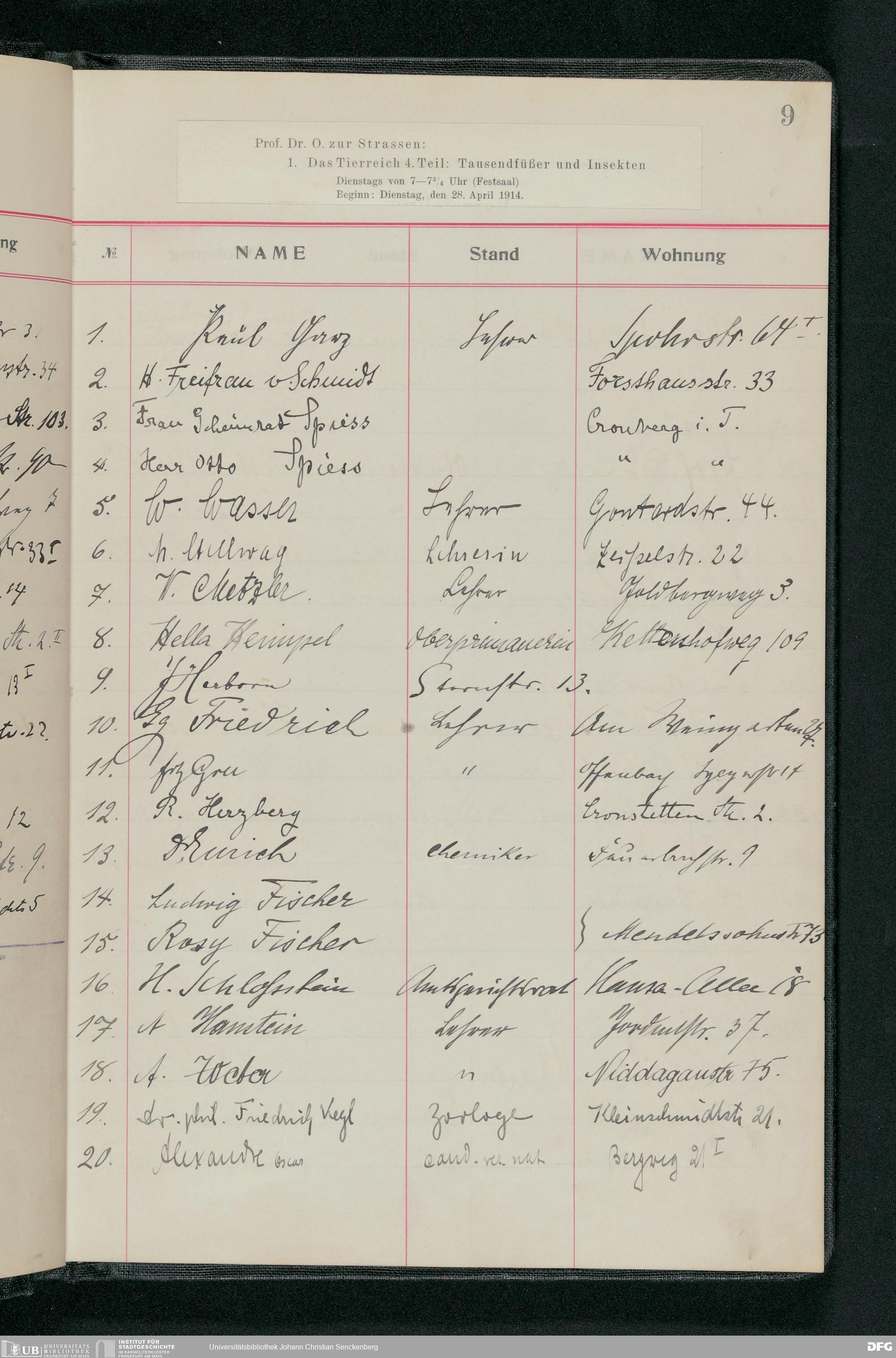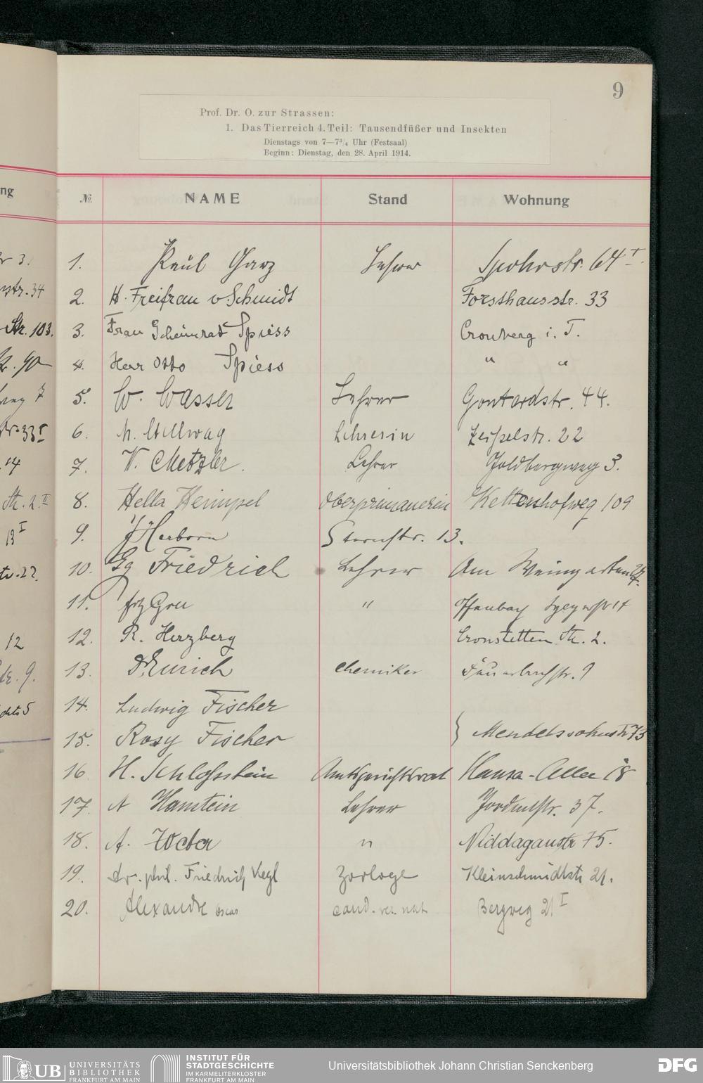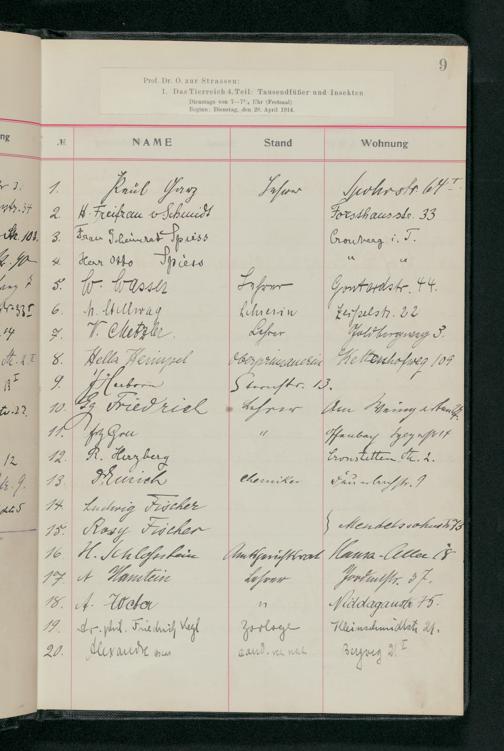 V176 Senckenberg Gesellschaft für Naturforschung, 58 - Teilnehmerlisten der Zoologievorlesungen, Bd. 3