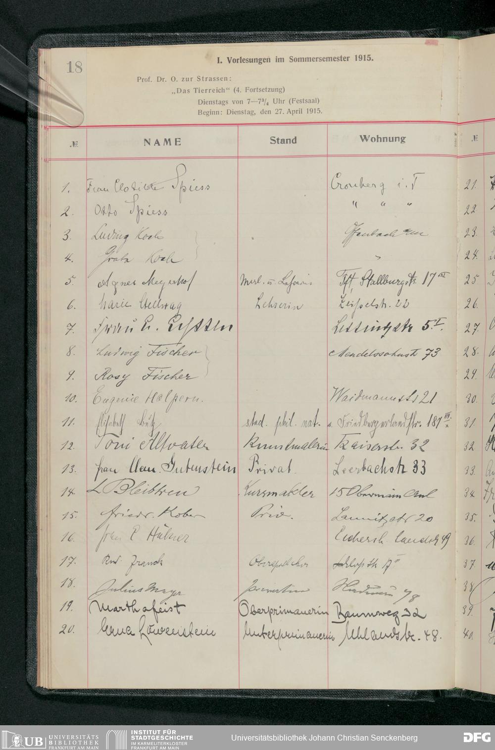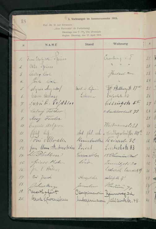 V176 Senckenberg Gesellschaft für Naturforschung, 58 - Teilnehmerlisten der Zoologievorlesungen, Bd. 3