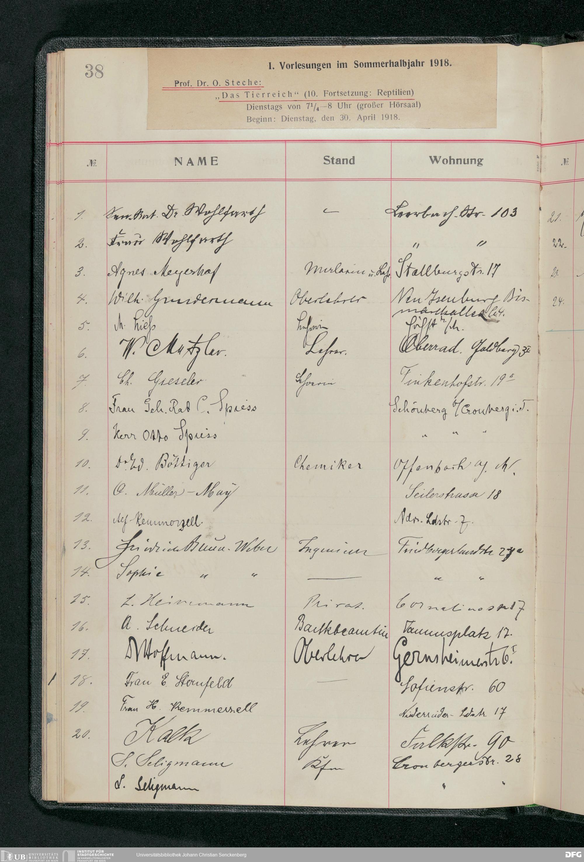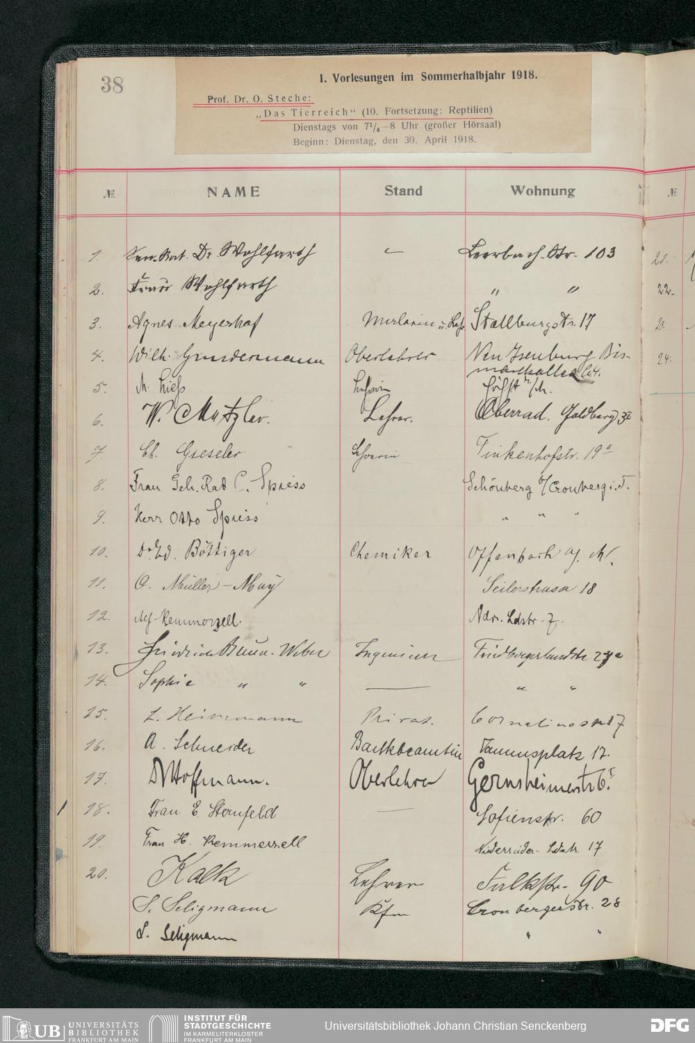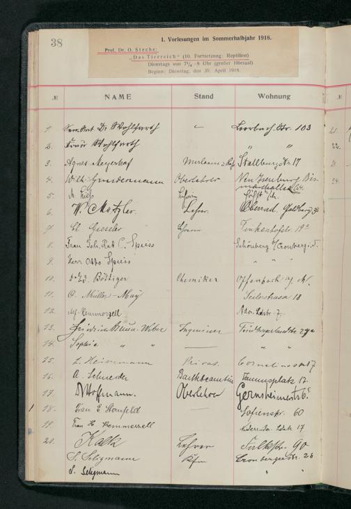 V176 Senckenberg Gesellschaft für Naturforschung, 58 - Teilnehmerlisten der Zoologievorlesungen, Bd. 3