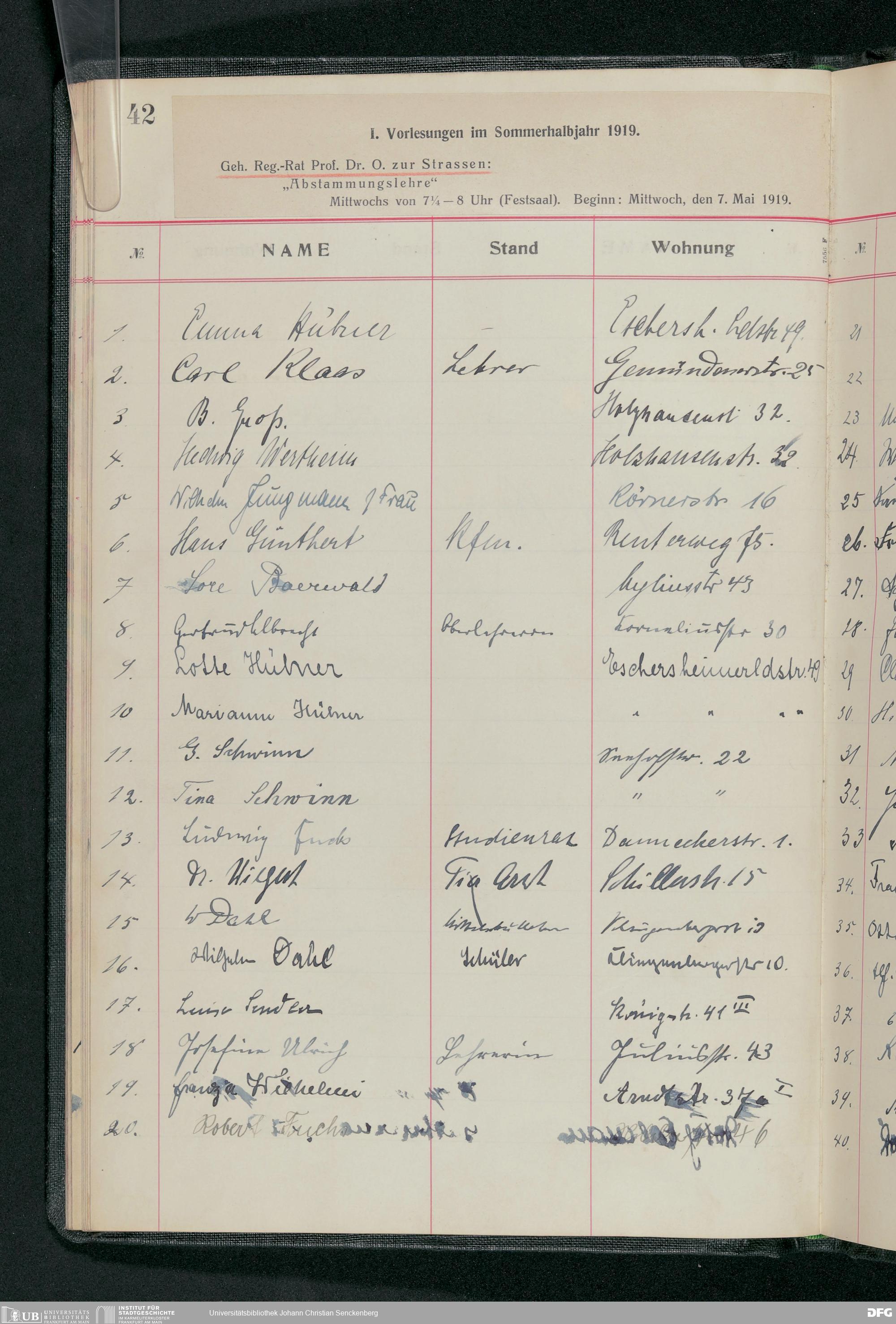 V176 Senckenberg Gesellschaft für Naturforschung, 58 - Teilnehmerlisten der Zoologievorlesungen, Bd. 3