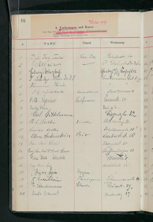 V176 Senckenberg Gesellschaft für Naturforschung, 58 - Teilnehmerlisten der Zoologievorlesungen, Bd. 3