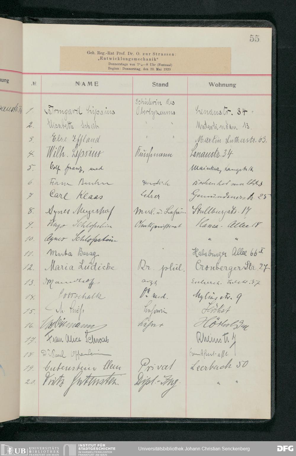 V176 Senckenberg Gesellschaft für Naturforschung, 58 - Teilnehmerlisten der Zoologievorlesungen, Bd. 3