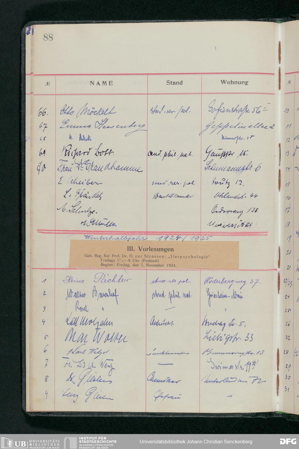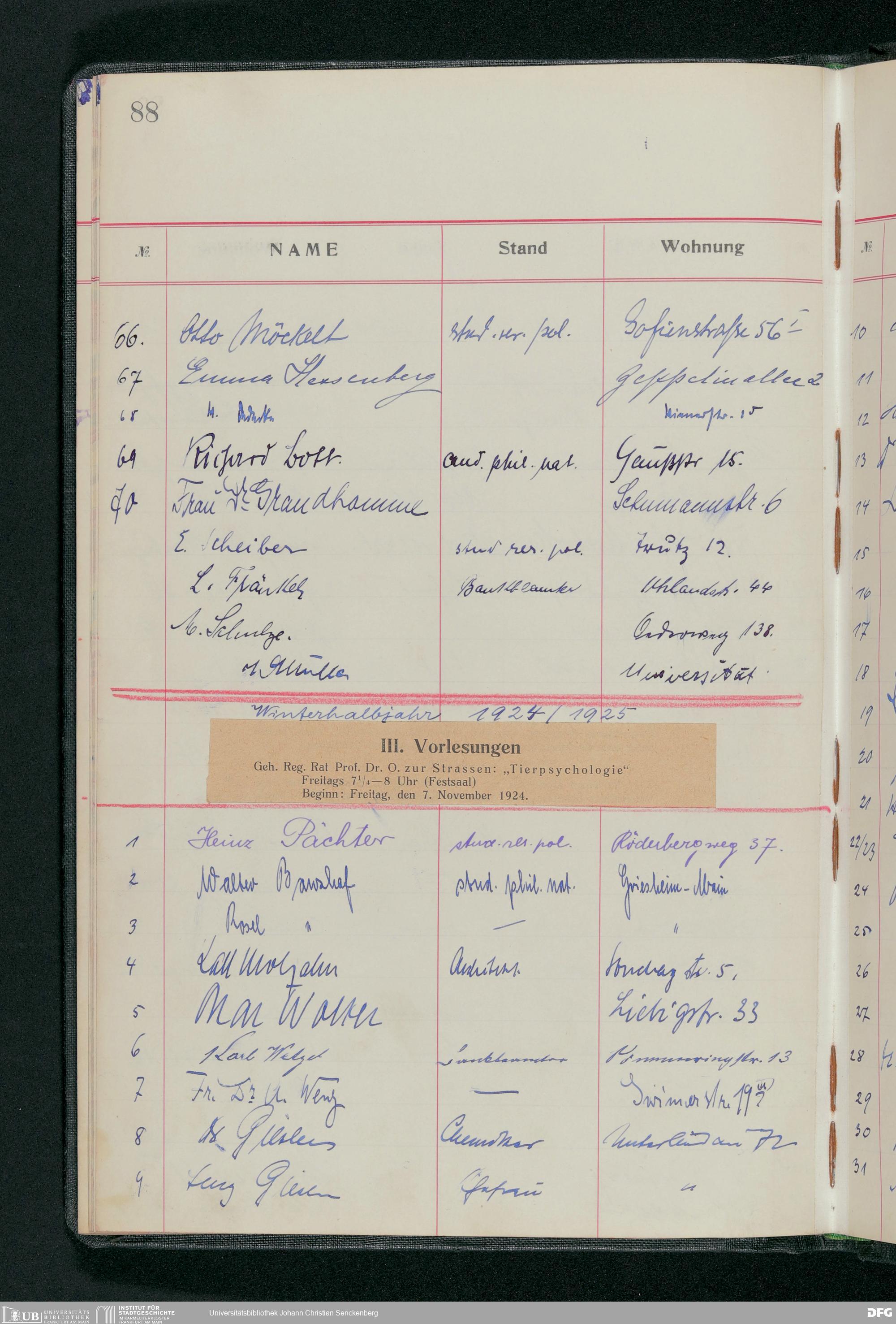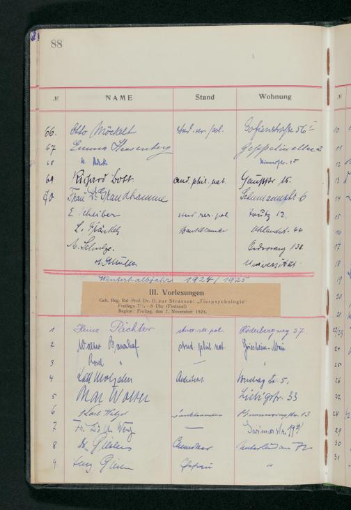 V176 Senckenberg Gesellschaft für Naturforschung, 58 - Teilnehmerlisten der Zoologievorlesungen, Bd. 3