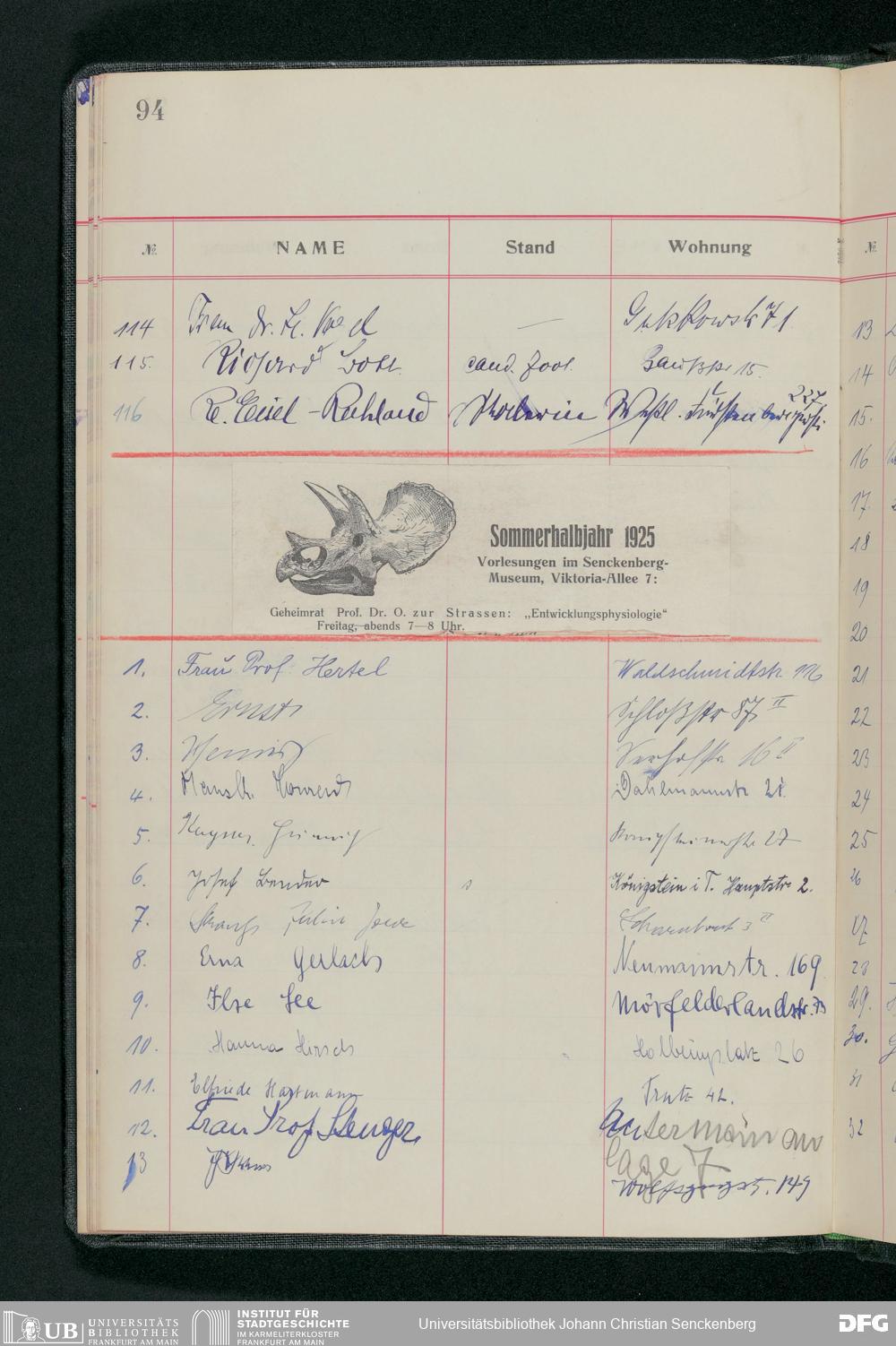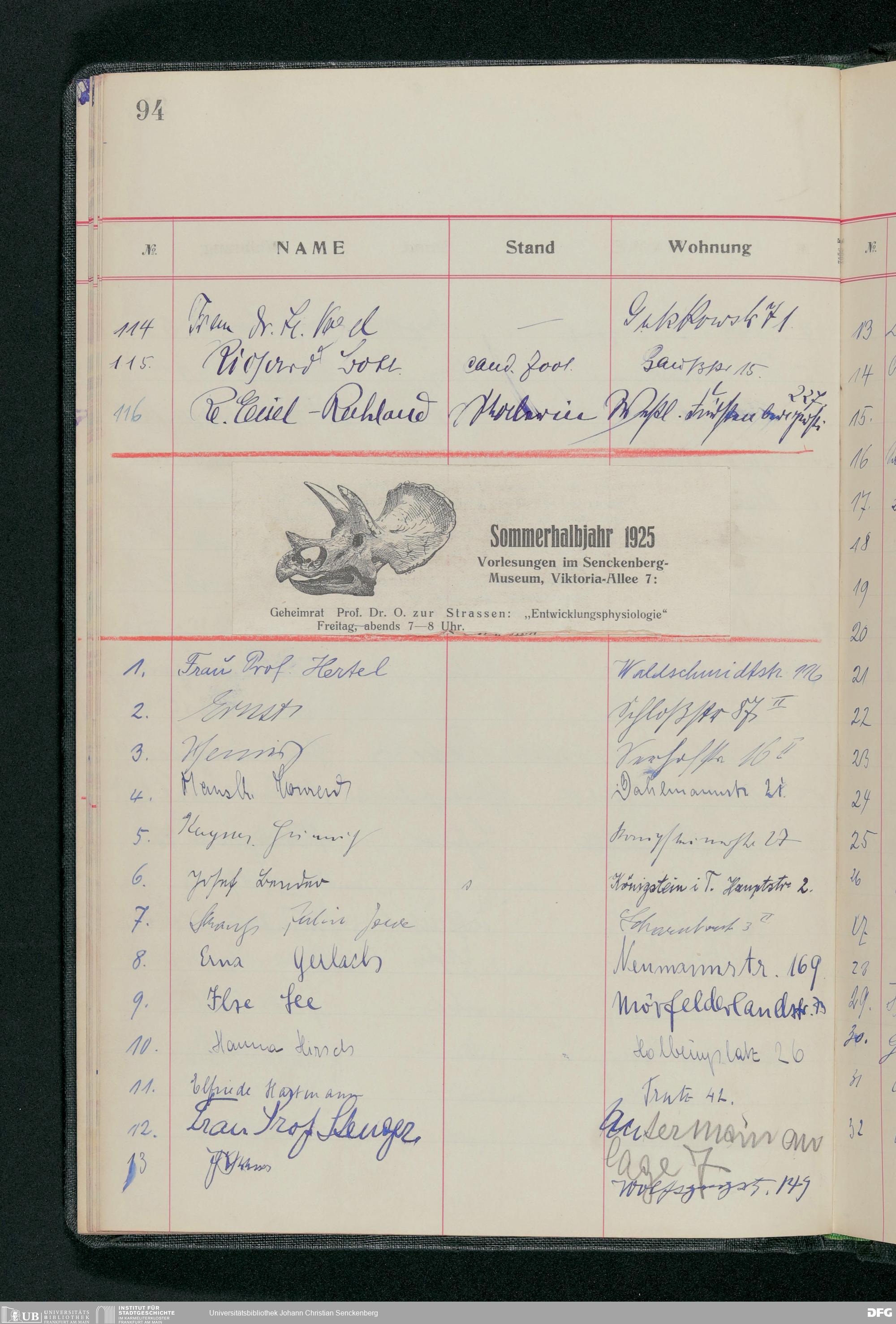 V176 Senckenberg Gesellschaft für Naturforschung, 58 - Teilnehmerlisten der Zoologievorlesungen, Bd. 3