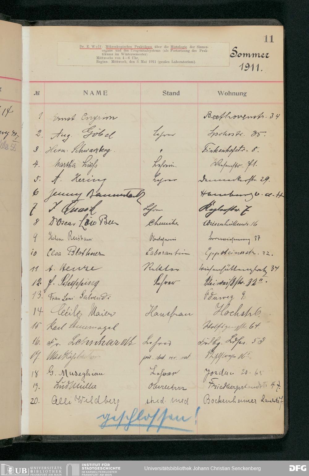 V176 Senckenberg Gesellschaft für Naturforschung, 60 - Teilnehmerlisten des zoologischen Praktikums, Bd. 2