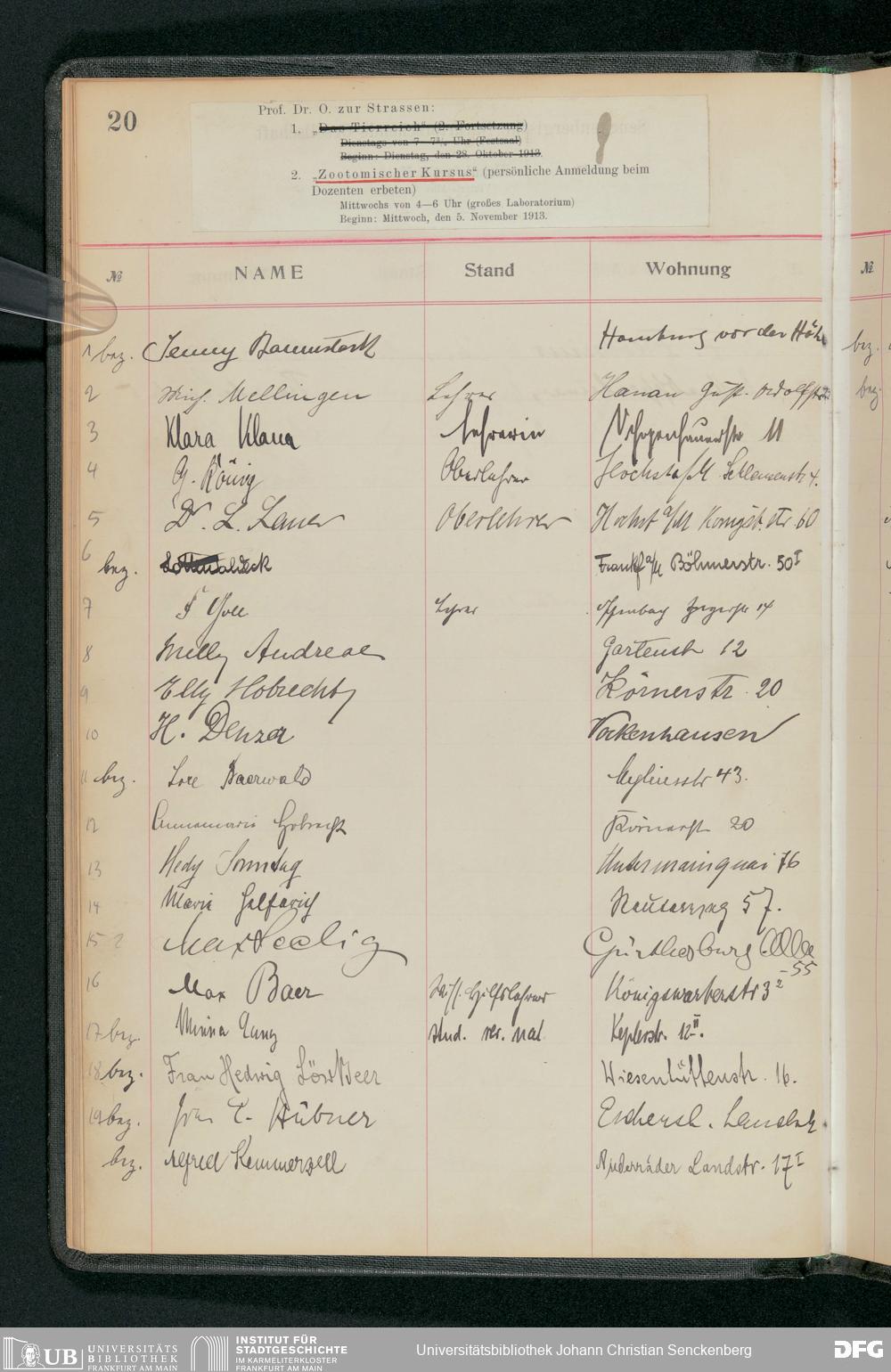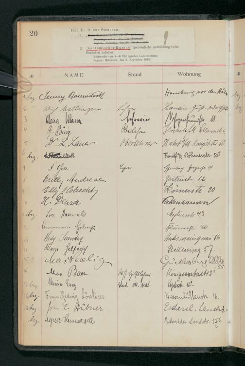 V176 Senckenberg Gesellschaft für Naturforschung, 60 - Teilnehmerlisten des zoologischen Praktikums, Bd. 2