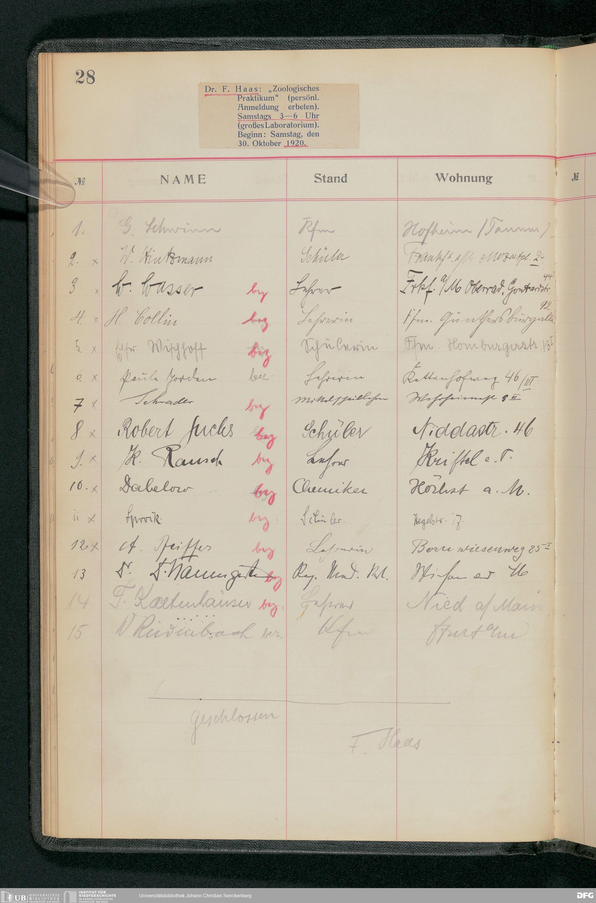 V176 Senckenberg Gesellschaft für Naturforschung, 60 - Teilnehmerlisten des zoologischen Praktikums, Bd. 2