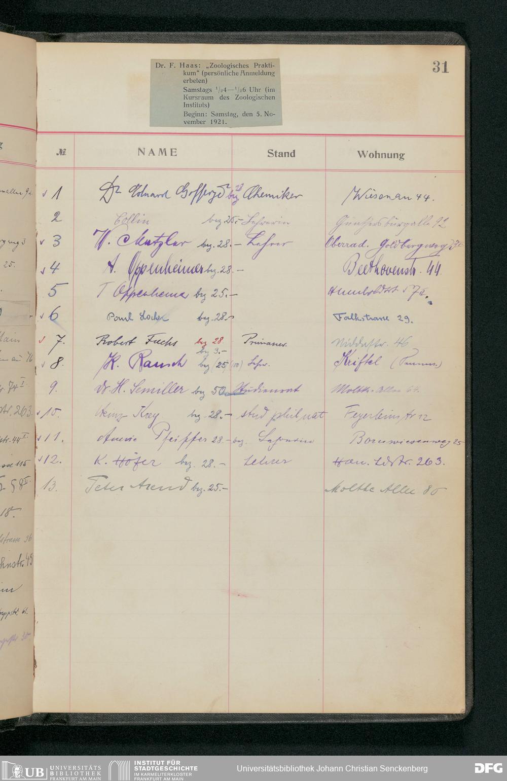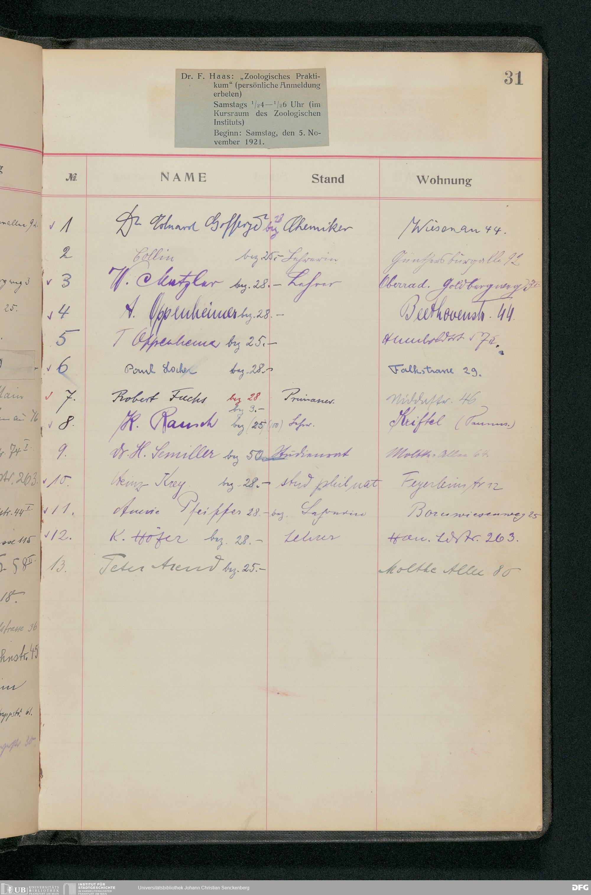 V176 Senckenberg Gesellschaft für Naturforschung, 60 - Teilnehmerlisten des zoologischen Praktikums, Bd. 2