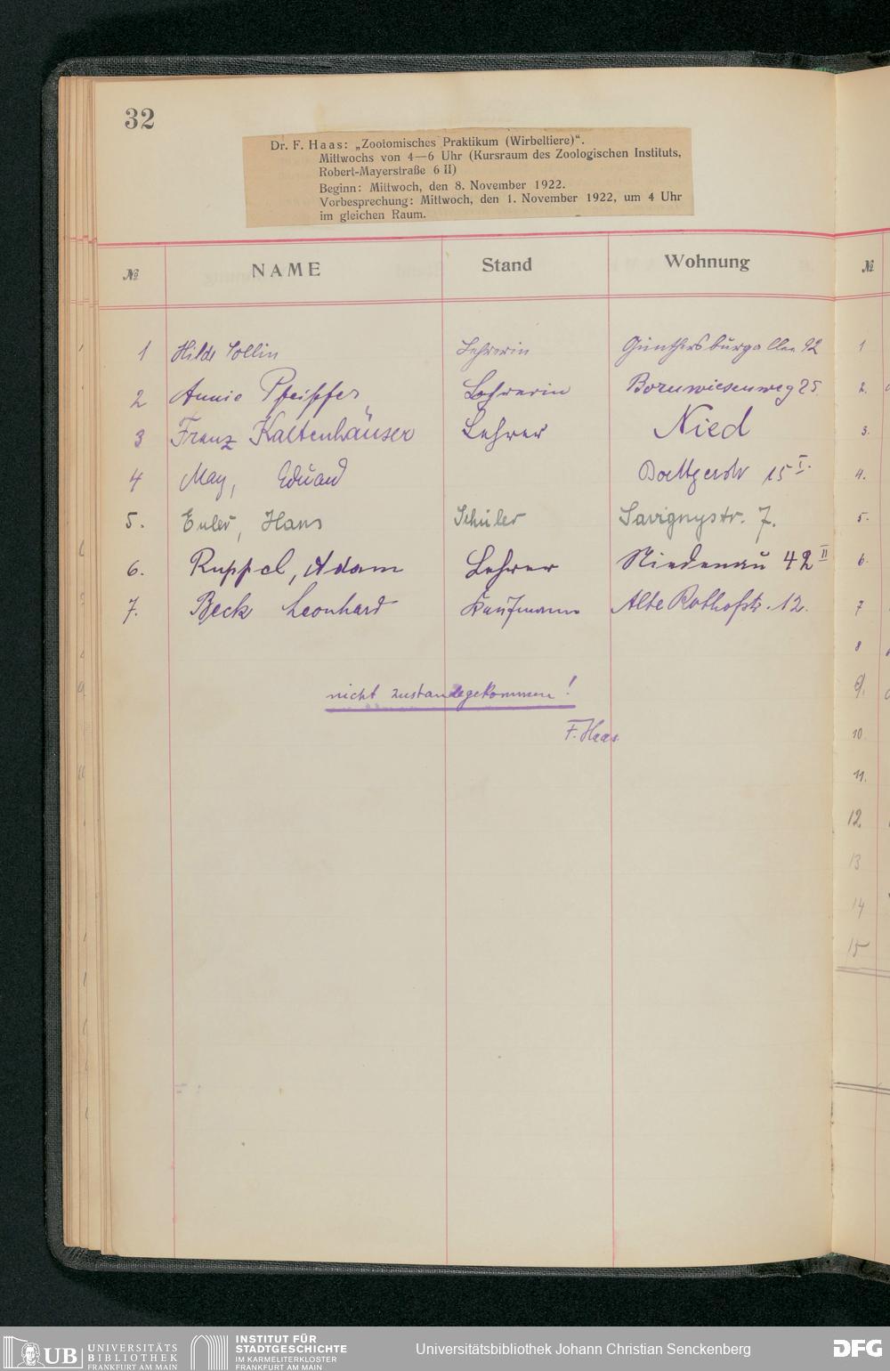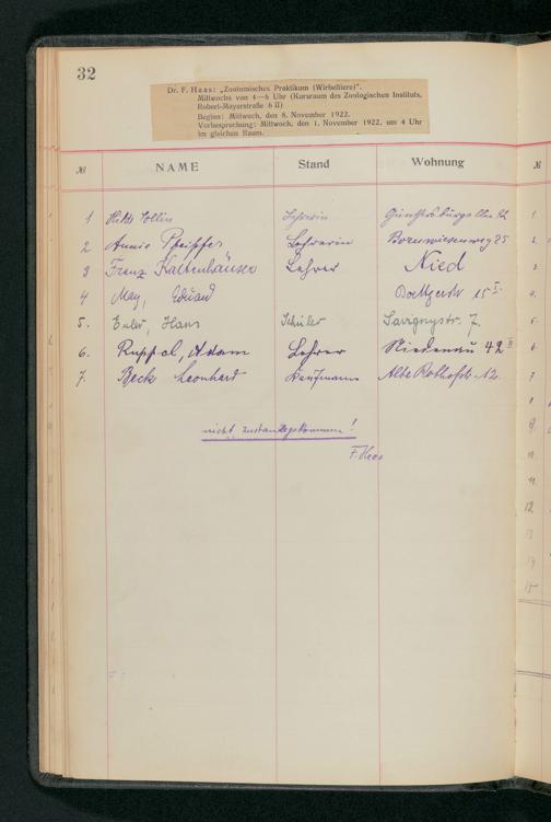 V176 Senckenberg Gesellschaft für Naturforschung, 60 - Teilnehmerlisten des zoologischen Praktikums, Bd. 2