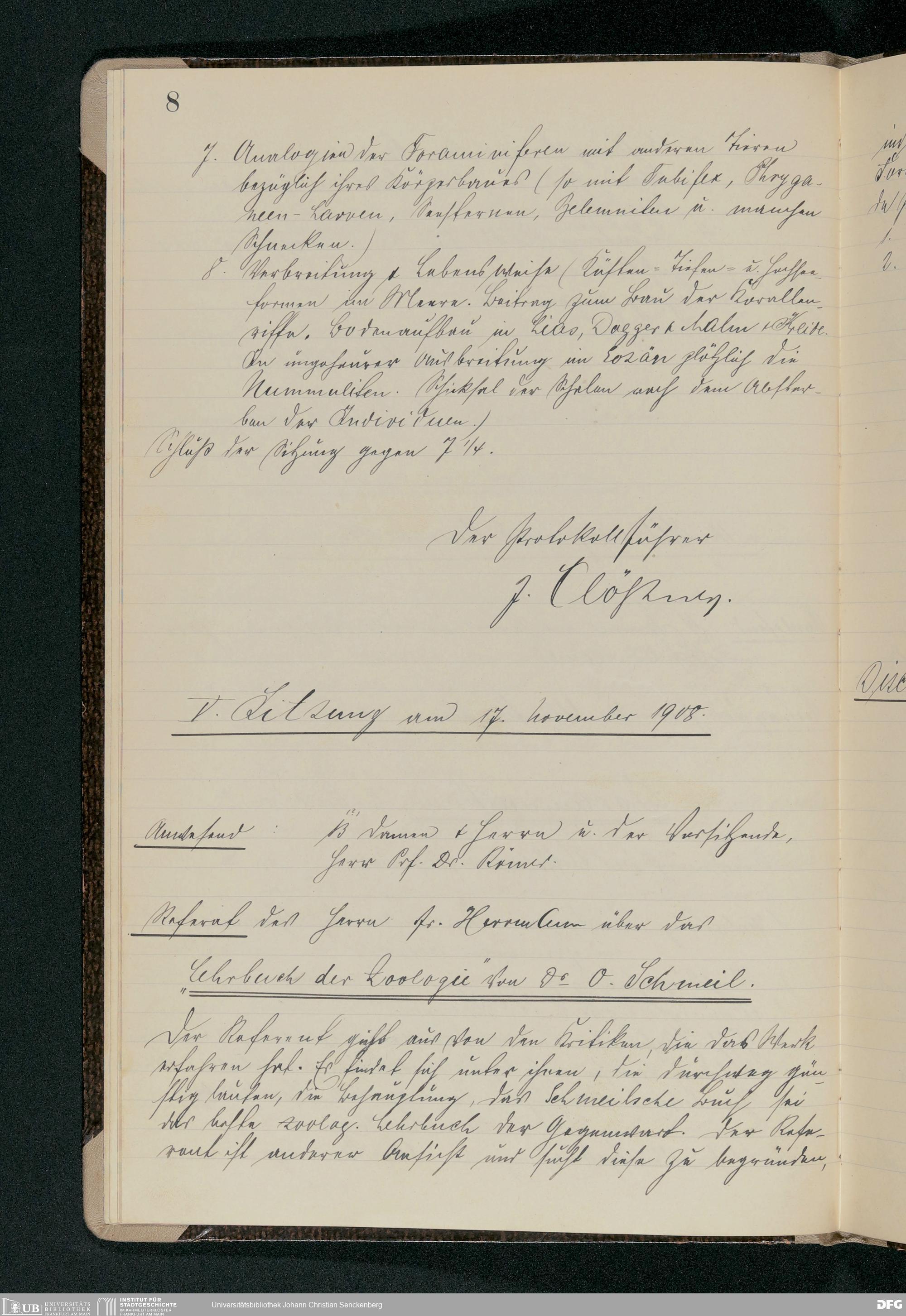 V176 Senckenberg Gesellschaft für Naturforschung, 61 - Sitzungsprotokolle des zoologischen Seminars von Fritz Römer