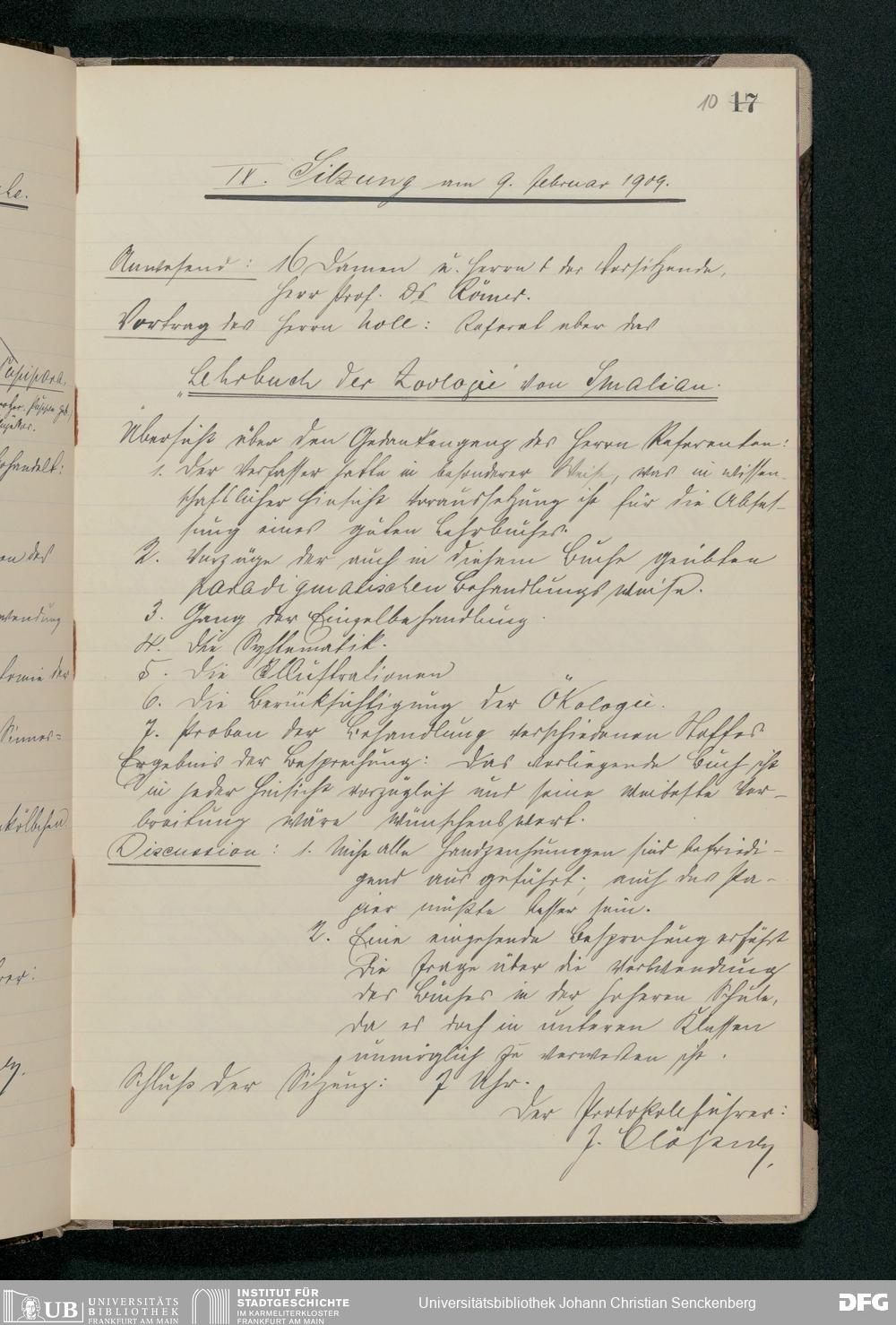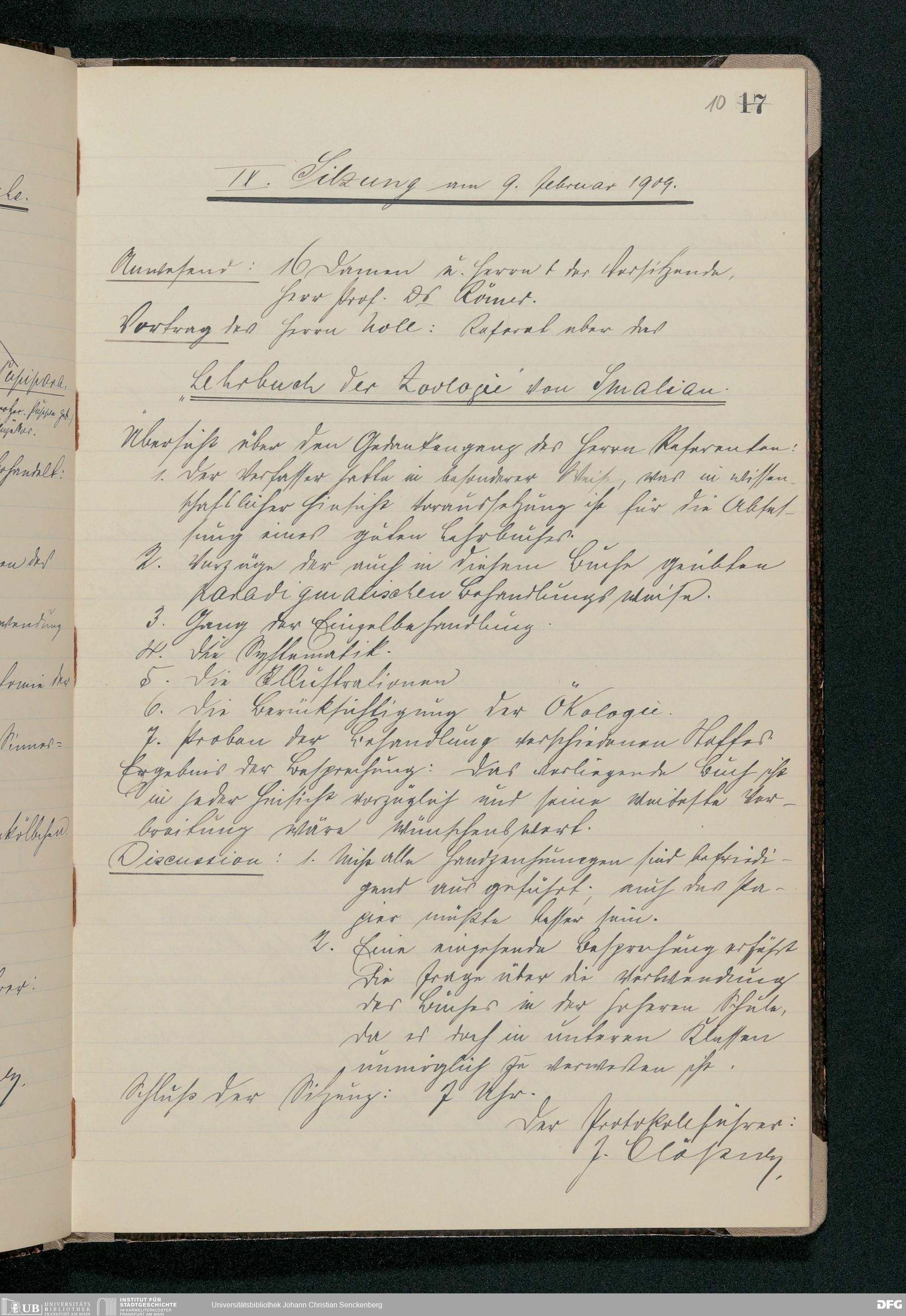 V176 Senckenberg Gesellschaft für Naturforschung, 61 - Sitzungsprotokolle des zoologischen Seminars von Fritz Römer