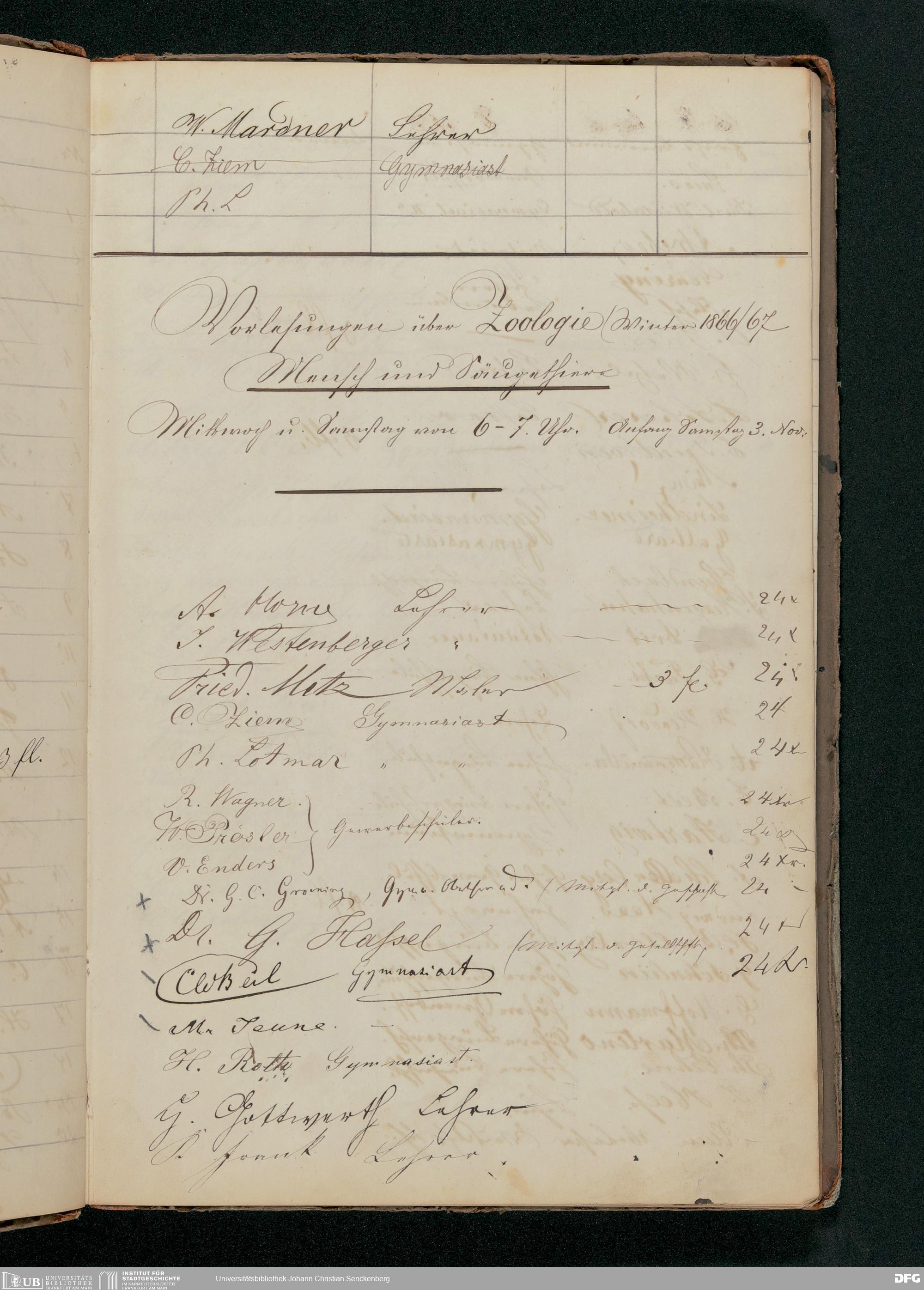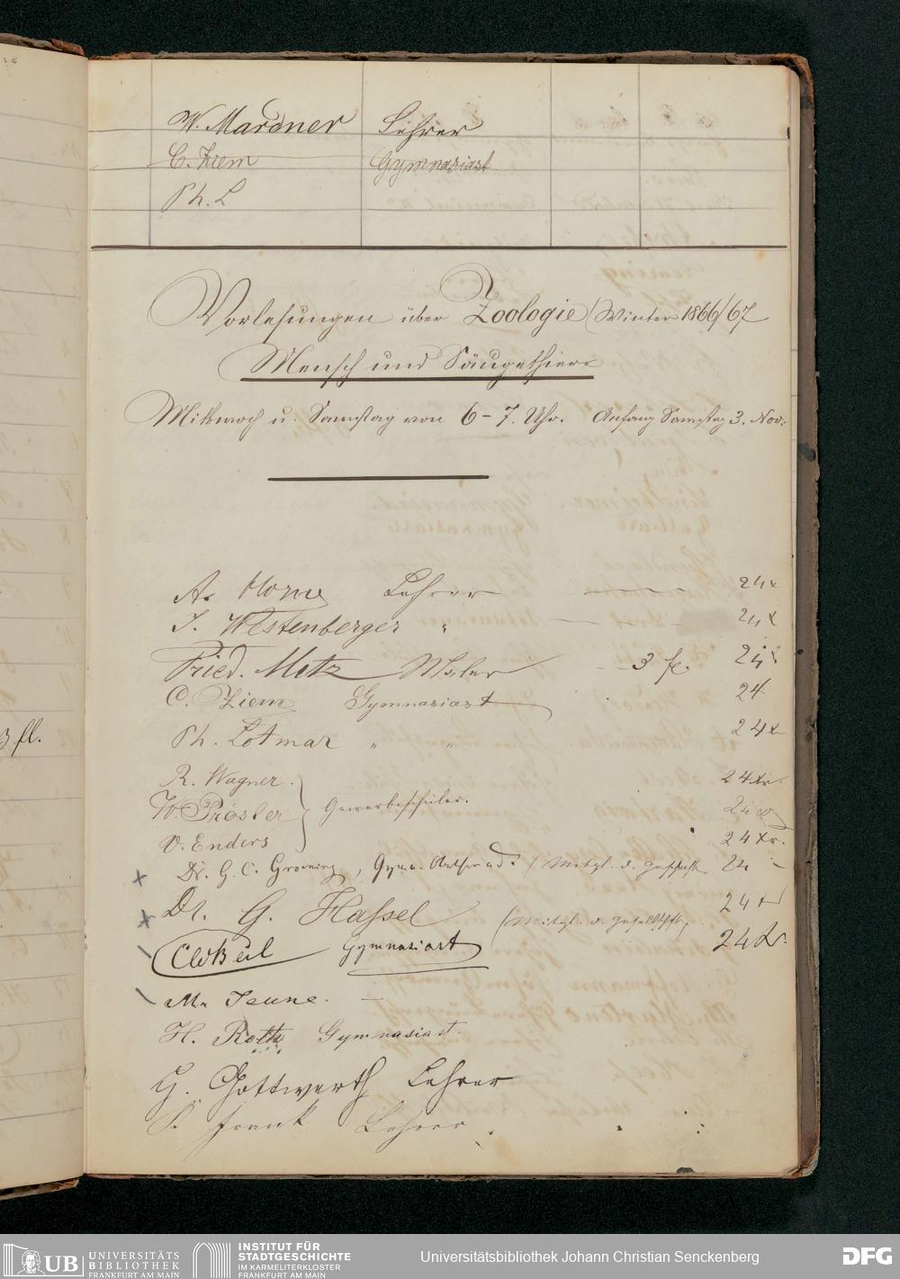 V176 Senckenberg Gesellschaft für Naturforschung, 63 - Teilnehmerlisten der Zoologievorlesungen, Bd. 4