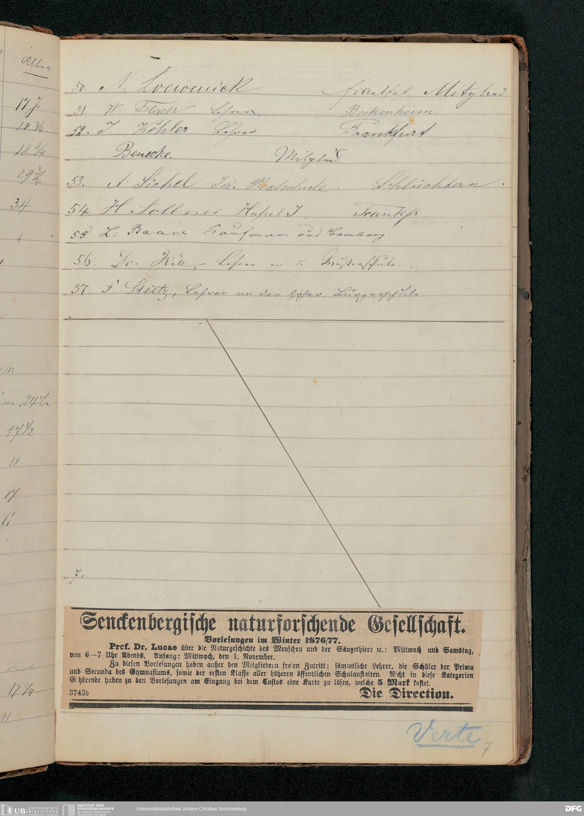 V176 Senckenberg Gesellschaft für Naturforschung, 63 - Teilnehmerlisten der Zoologievorlesungen, Bd. 4