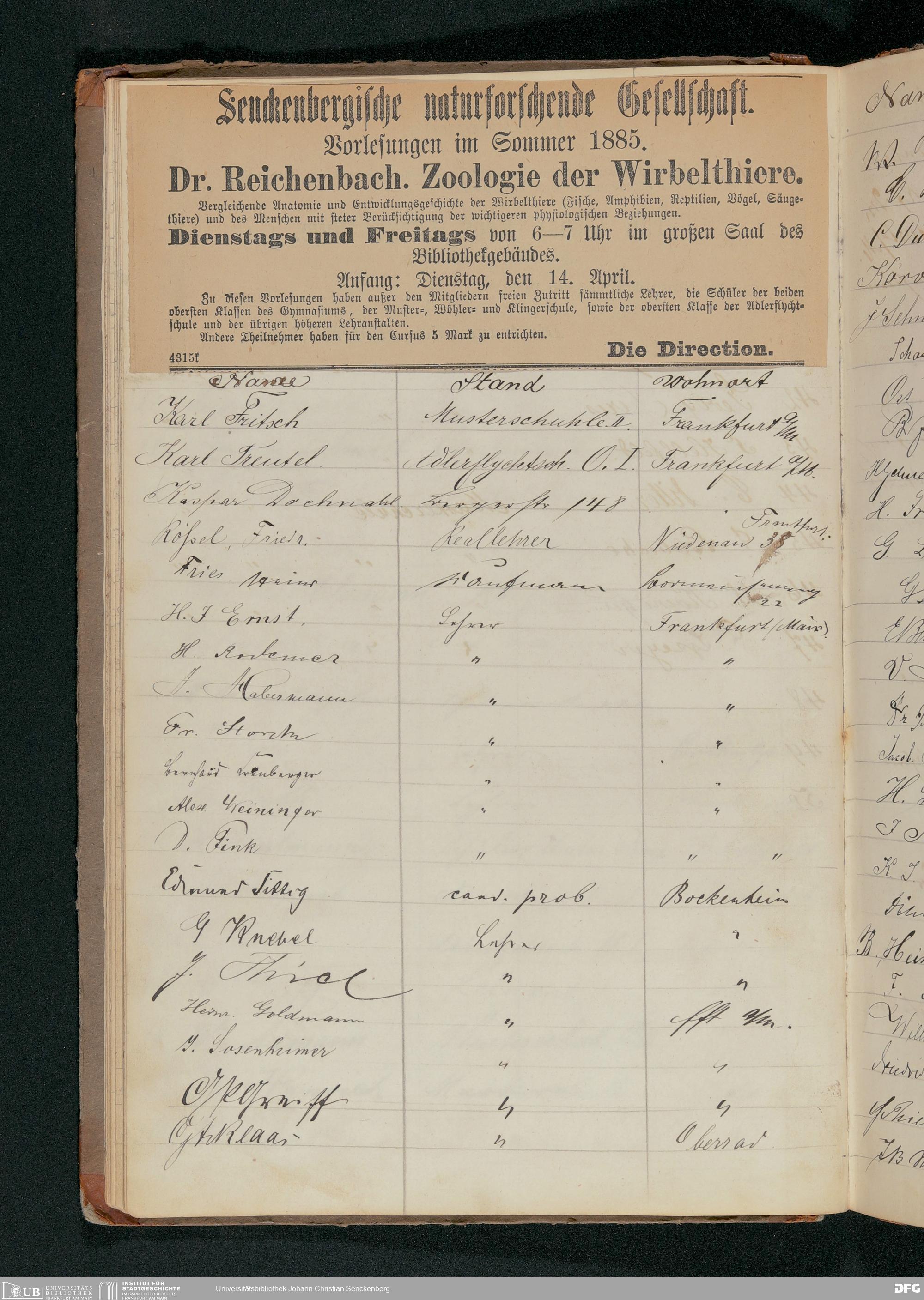 V176 Senckenberg Gesellschaft für Naturforschung, 63 - Teilnehmerlisten der Zoologievorlesungen, Bd. 4